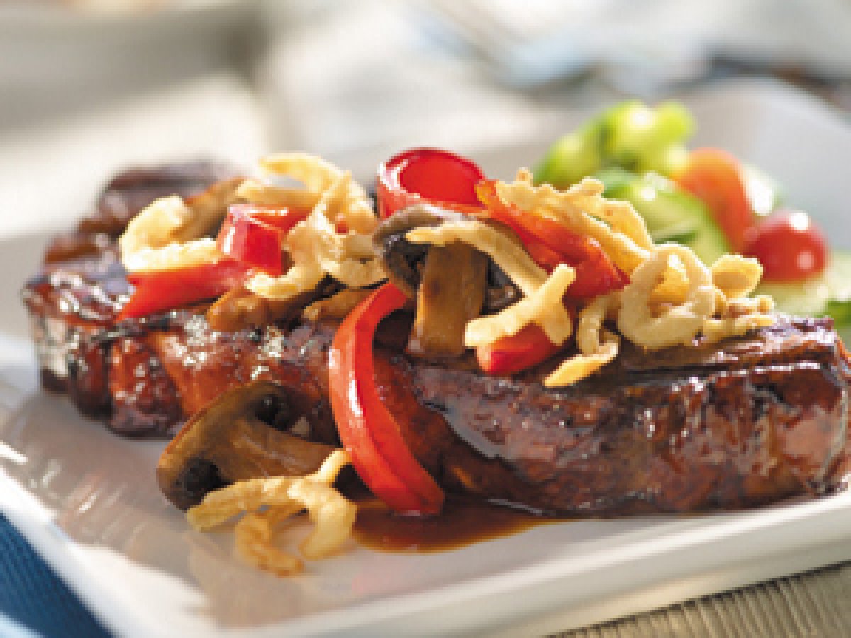 Friptura de vita (teriyaki steak) Felul principalFoarte ușor50 min Trimite unui prieten Printează pagina Adresează o întrebare autorului Postează o poză cu rețeta gătită de tine Ingrediente 8 4 bucati carne de vita,de aproximativ 200 g fiecare (sirloin, ribeye or tenderloin)-muschi de vita la noi 4 linguri sos(marinada) teriyaki 1/2 cana sos de soia, 1/2 cana sake(sau vin de orez), 2 linguri de miere de albine sau 2 linguri de - zahar(brun), ghimbir(optional) cozi de ceapa verde tocate fin (optional) 2 catei de usturoi zdrobiti 1 ardei rosu piscator (chili) taiat fin 3 linguri de unt la temperatura camerei 2 lingurite pasta de wasabi 1 lingura arpagic (o ceapa mica(chives)-optional) Pentru salata Asiatica: 1 ceapa rosie taiata rondele fine 1 cutie de fasole verde 8 ridichi mici taiate rondele subtiri mix de frunze pentru salata