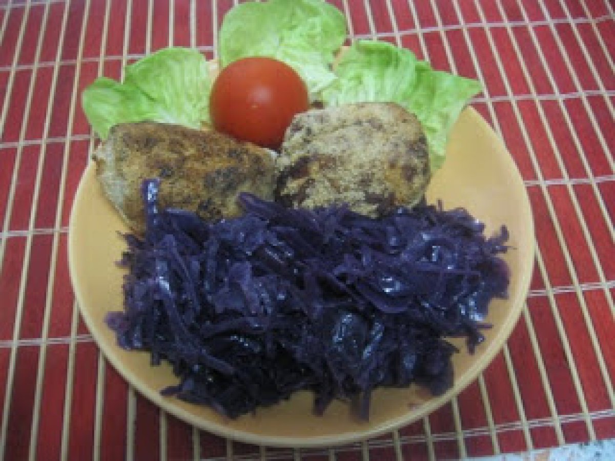 Galuste de cartofi umplute cu branza , cu garnitura de varza rosie votează acum Felul principalFoarte ușor40 min Trimite unui prieten Printează pagina Adresează o întrebare autorului Postează o poză cu rețeta gătită de tine Ingrediente 4 1 kg cartofi 1 varza rosie 4 oua 200 g branza 6 linguri gris 1 ceapa 4 linguri amidon nucsoara macinata 1 ceapa verde 4 cuisoare 2-3 linguri ulei 250 ml supa 75 ml otet 75 g nuci sare piper zahar marar verde