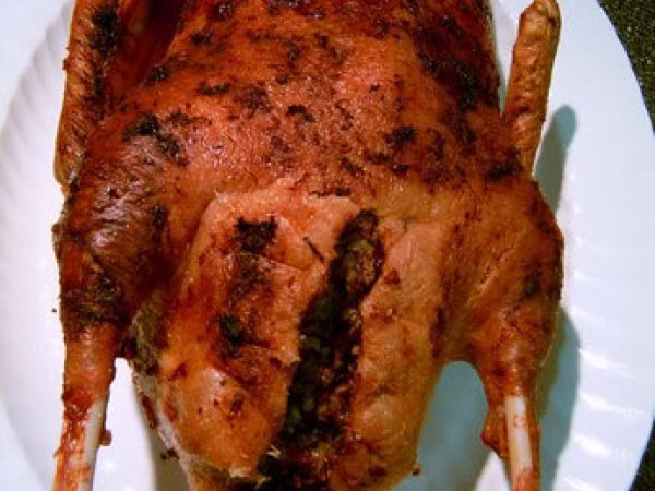 Gasca umpluta cu castane Felul principalFoarte ușor1 h 30 m Trimite unui prieten Printează pagina Adresează o întrebare autorului Postează o poză cu rețeta gătită de tine Ingrediente 4 1 gasca 1 lingurita cimbru 1 lingurita patrunjel tocat 4 linguri coji de portocale rase 300 g sunca afumata 1 ceapa 1 ceasca orez 500 g castane coapte unt ulei sare piper