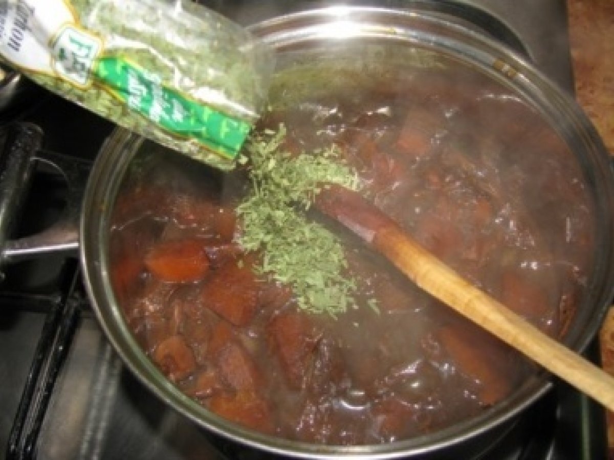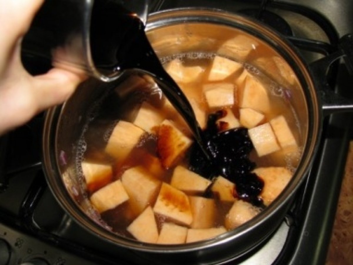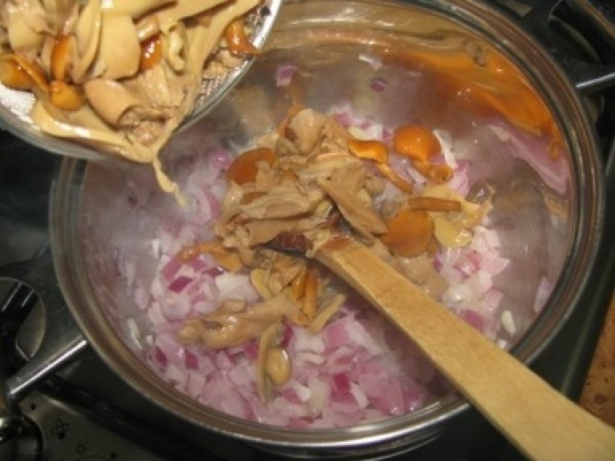 Ghiveci cu ciuperci si cartofi dulci PrecedentulUrmătorul Felul principalFoarte ușor1 h 25 m Trimite unui prieten Printează pagina Adresează o întrebare autorului Postează o poză cu rețeta gătită de tine Ingrediente 4 450 g mix de ciuperci 1 lingura ulei de nuci 200 g ceapa, tocata 500 g cartofi dulci, decojiti si taiati cuburi 2 linguri sos de soia 700 ml bullion de legume sare si piper negru 2 linguri tarhon, tocat