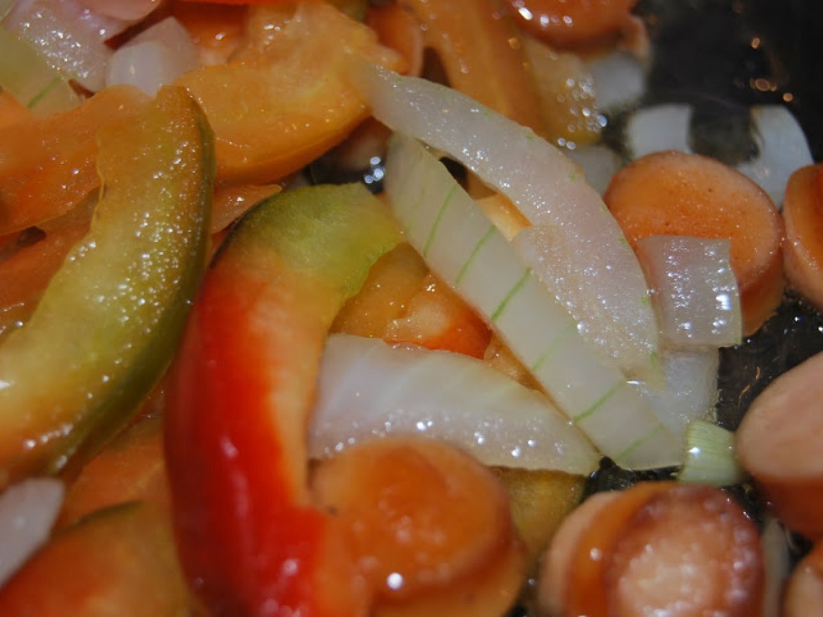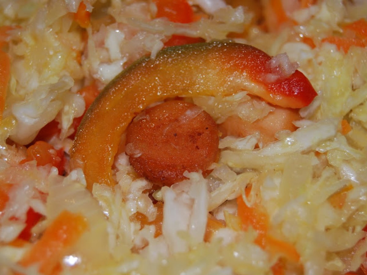Ghiveci cu varza, orez si crenvursti votează acum PrecedentulUrmătorul Felul principalFoarte ușor40 min Trimite unui prieten Printează pagina Adresează o întrebare autorului Postează o poză cu rețeta gătită de tine Ingrediente 2 10 crenvursti 1 ceapa 1 gogosar 1 morcov 1/2 varza mica 1 ceasca orez 2 foi de dafin cimbru sare, piper, boia