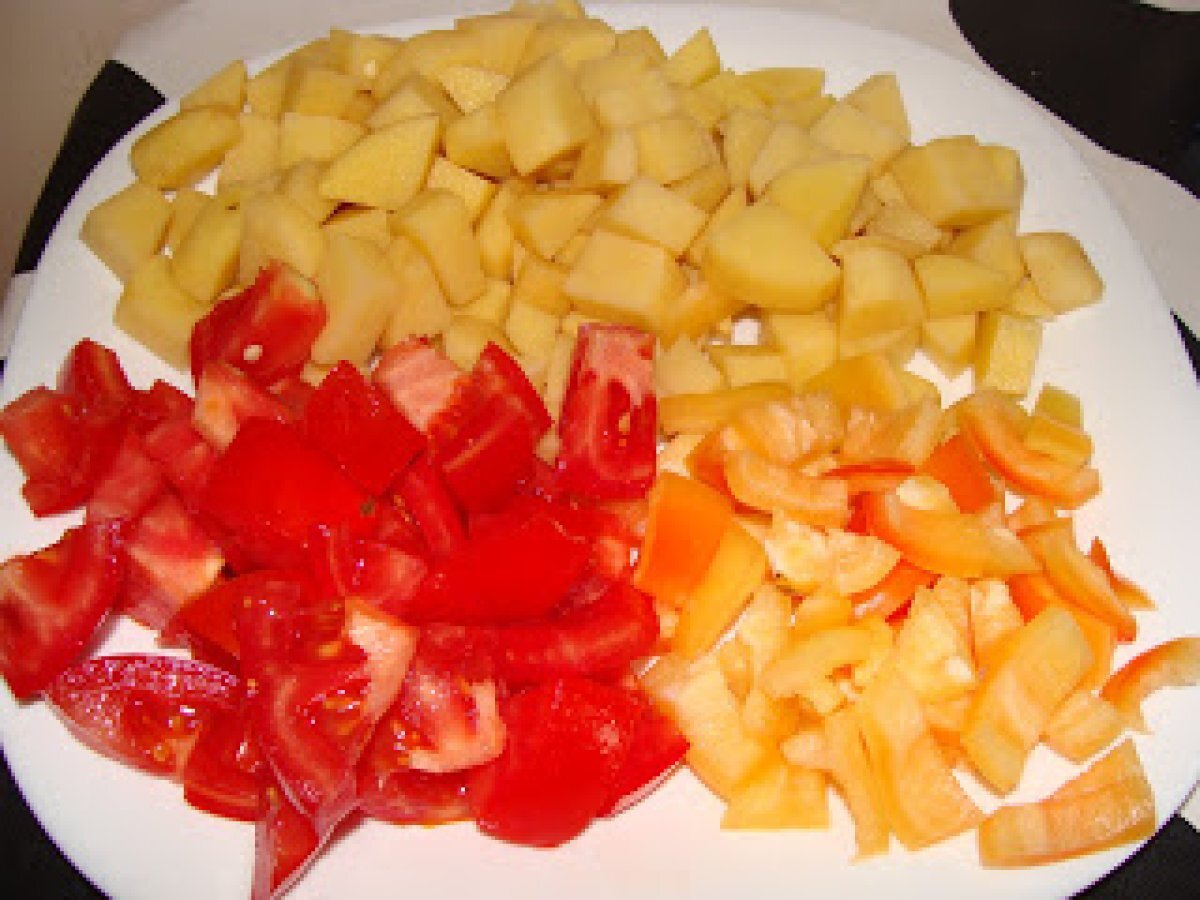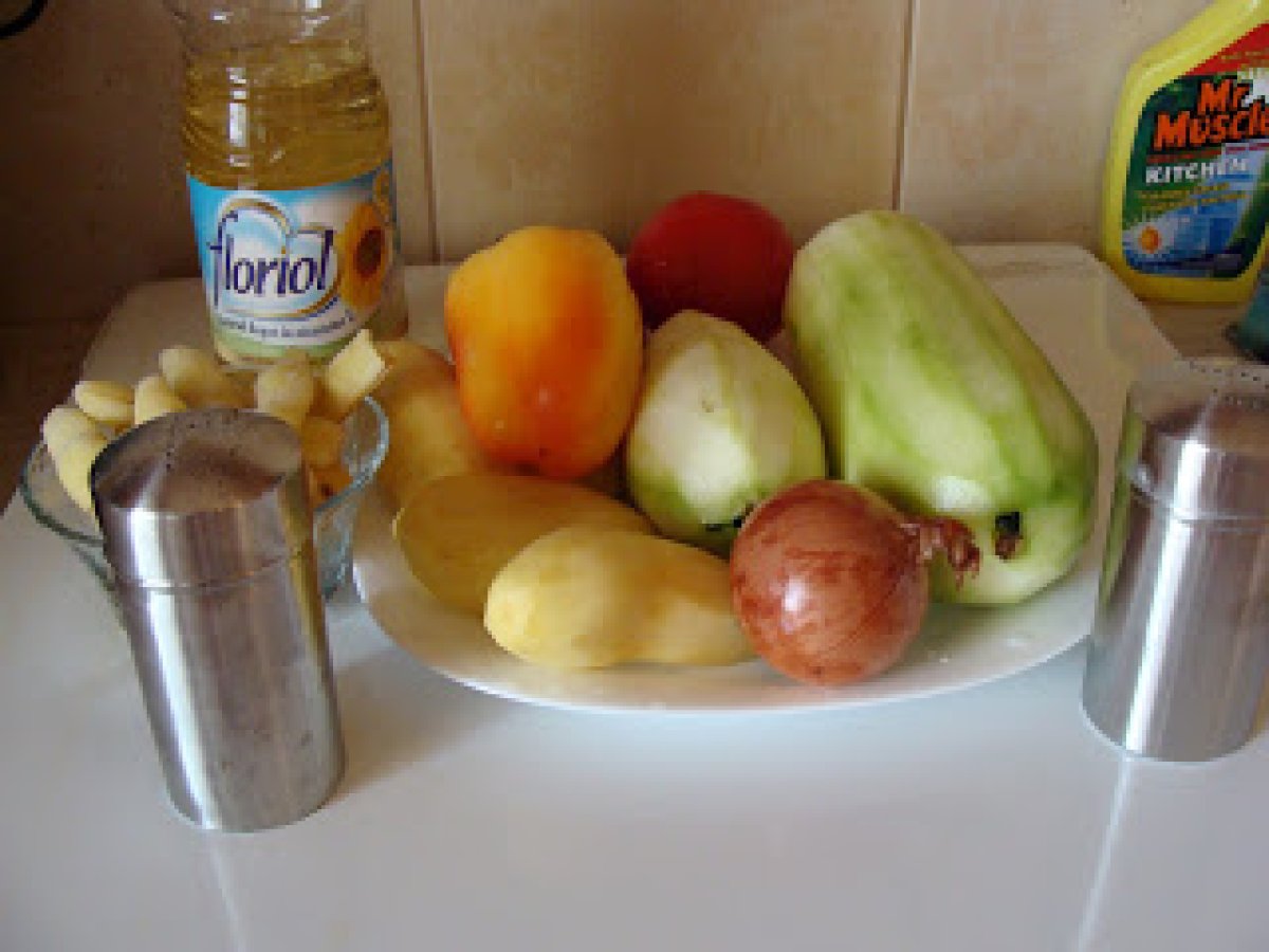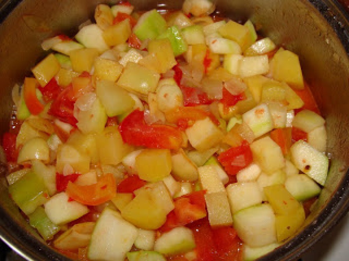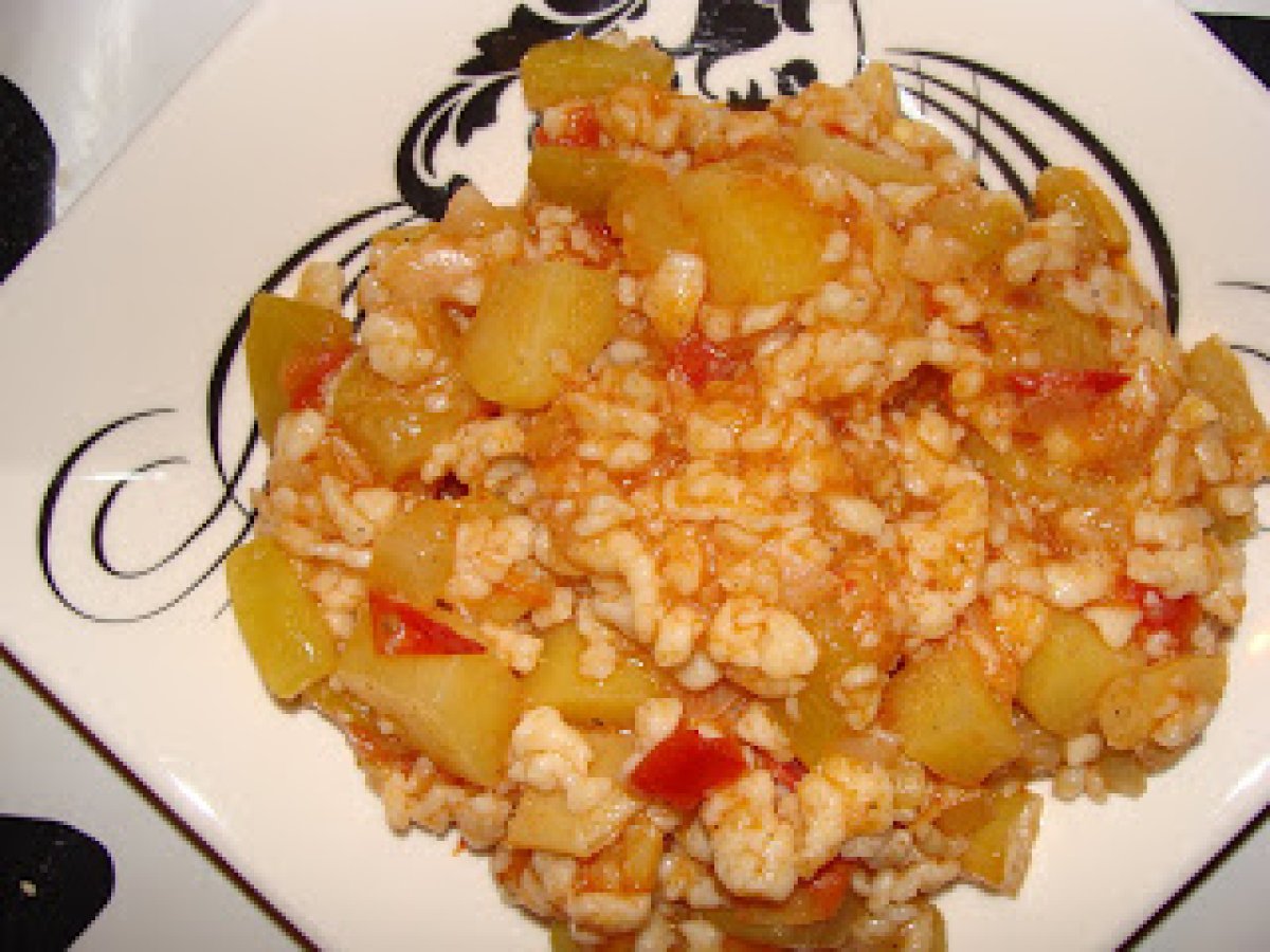 Ghiveci de legume cu paste de casa PrecedentulUrmătorul Felul principalFoarte ușor50 min Trimite unui prieten Printează pagina Adresează o întrebare autorului Postează o poză cu rețeta gătită de tine Este o mancarica atat de gustoasa , dar si atat de usoara. Ingrediente 4 2-3 dovlecei( aprox. 1 kg) 4 cartofi (aprox. 400 g) 2 rosii 1 ardei 1 ceapa fasole verde 150 g paste de casa, sau cus-cus ulei sare , piper