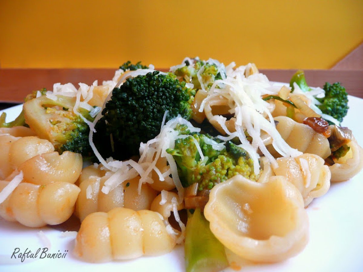 Gnocchi cu broccoli, masline si stafide PrecedentulUrmătorul Felul principalFoarte ușor30 min Trimite unui prieten Printează pagina Adresează o întrebare autorului Postează o poză cu rețeta gătită de tine Ingrediente 4 1 bucata de praz un buchetel de broccoli cateva masline taiate feliute cateva stafide melcisori/spaghete/gnocchi sau alte paste sare, piper, ulei de masline 1 lingurita de bulion 2 catei de usturo- i