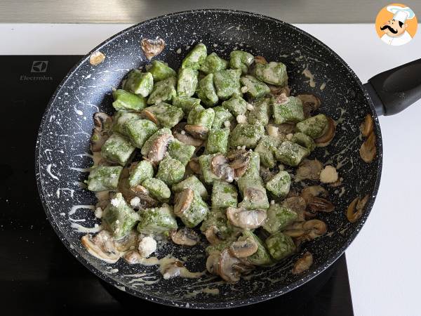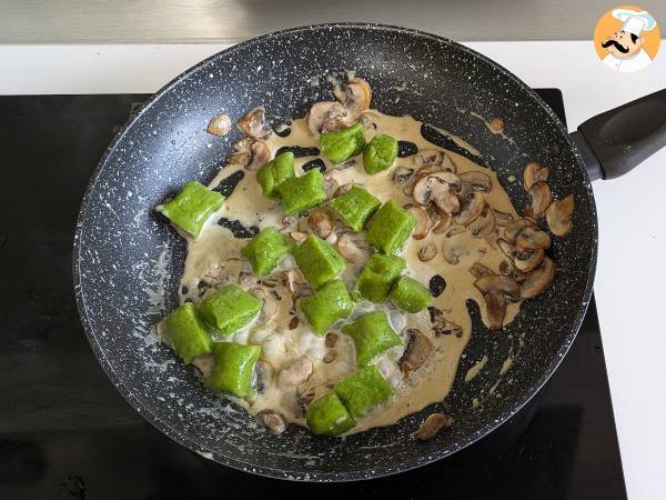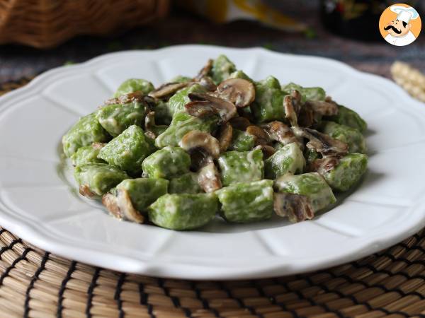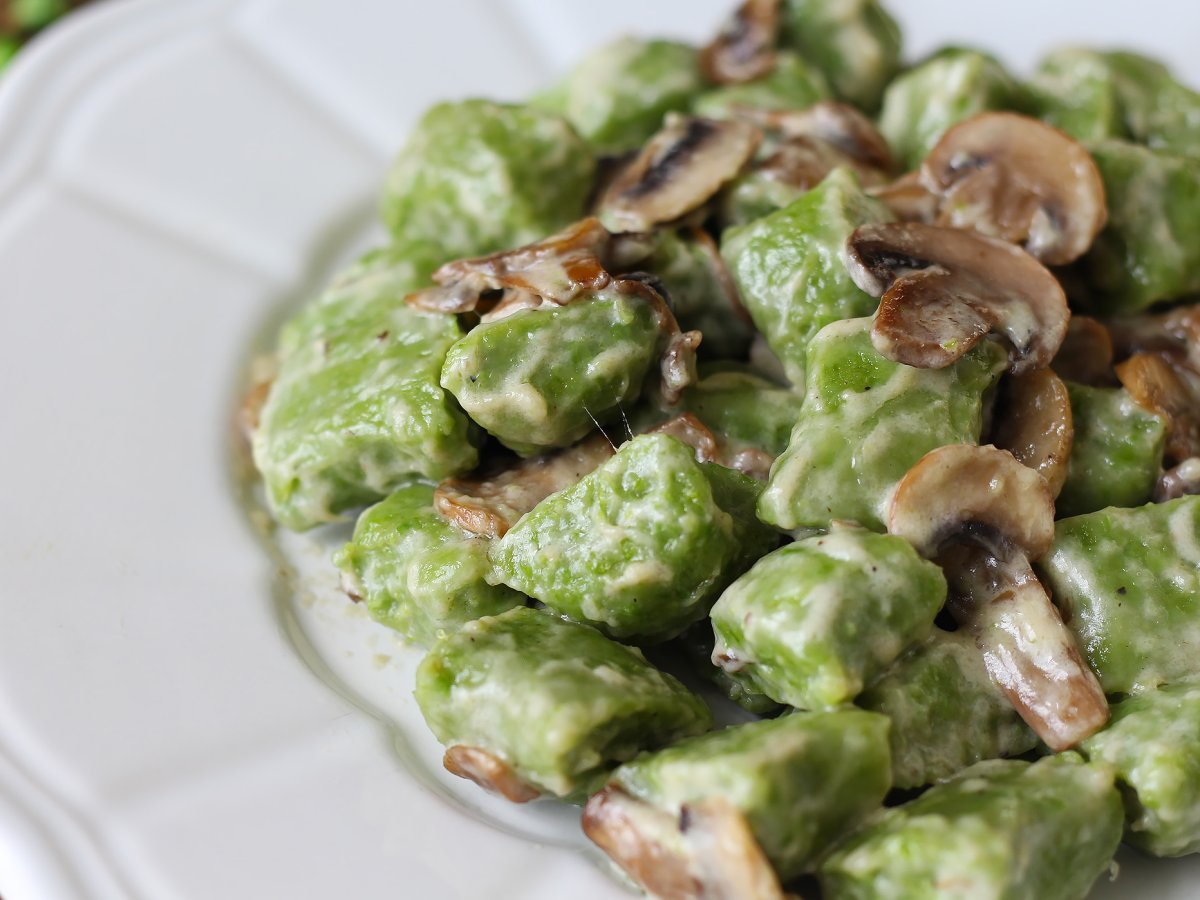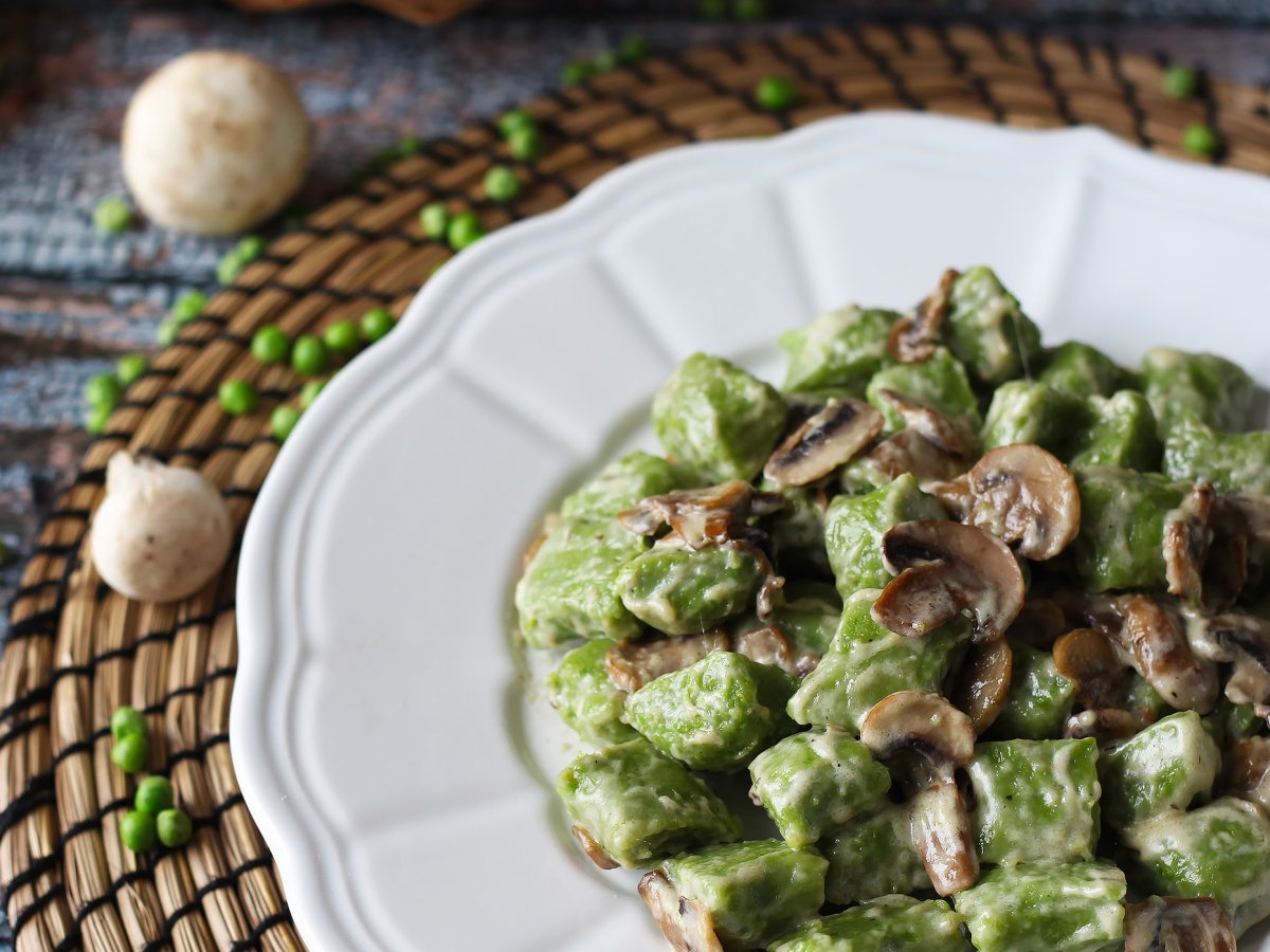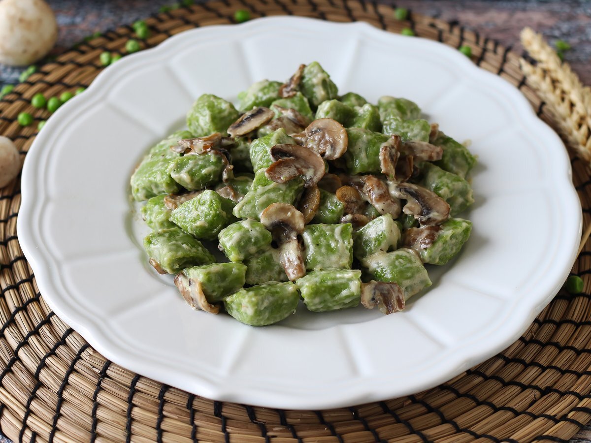 Gnocchi de mazăre cu sos de ciuperci este o mâncare delicată și gustoasă, perfectă pentru cei cărora le plac variațiile originale ale bucătăriei tradiționale. Gnochi, realizați pe bază de mazăre și făină (fără ouă), sunt ușoare, cu o aromă dulce, vegetală. Textura lor se potrivește perfect cu un sos cremos de ciuperci champignon, dar puteți folosi și ciuperci porcini sau un amestec de ciuperci. Sunteți gata să încercați ceva complet nou? Chiar dacă nu sunteți un bucătar experimentat, cu această rețetă simplă și intuitivă puteți pregăti un prim fel vegetarian care vă va surprinde. Perfect pentru o cină cu prietenii sau familia.