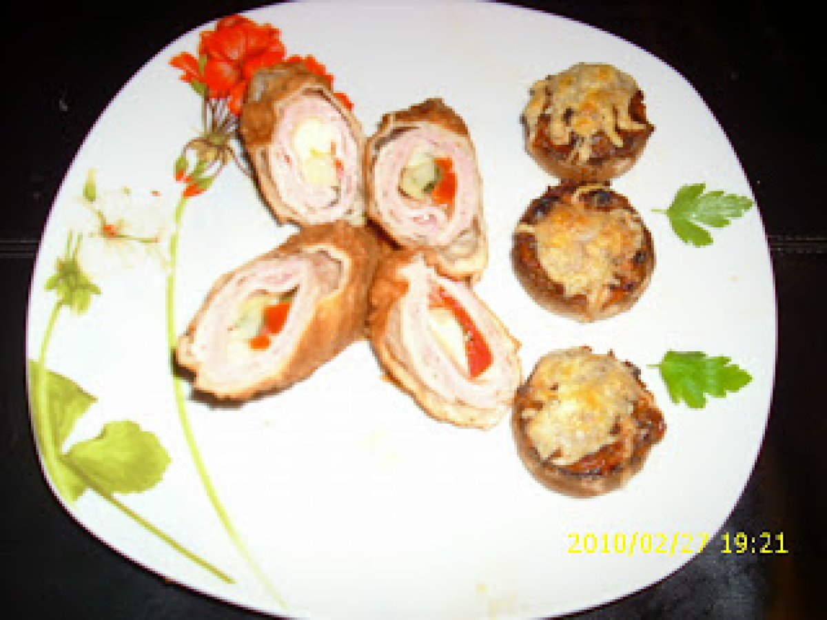 Gordon bleu cu gogosari murati votează acum PrecedentulUrmătorul Felul principalFoarte ușor35 min Trimite unui prieten Printează pagina Adresează o întrebare autorului Postează o poză cu rețeta gătită de tine Ingrediente 4 4 snitele mari 6-8 felii sunca presata 100 g cascaval 1 ardei galben frunze patrunjel gogosari murati 2 oua sare piper faina 4 linguri lapte