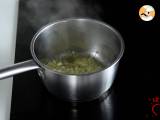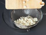 Ceapa se toacă mărunt, se toarnă ulei de măsline într-o tigaie și, când este fierbinte, se adaugă ceapa. Se călește câteva minute.