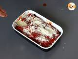 Continuați să formați straturile în această ordine (pentru o parmigiana bună, aveți nevoie de cel puțin 3 straturi), și amintiți-vă că ultimul strat trebuie compus în această ordine: mozzarella, sos de roșii și (mult) parmezan.
