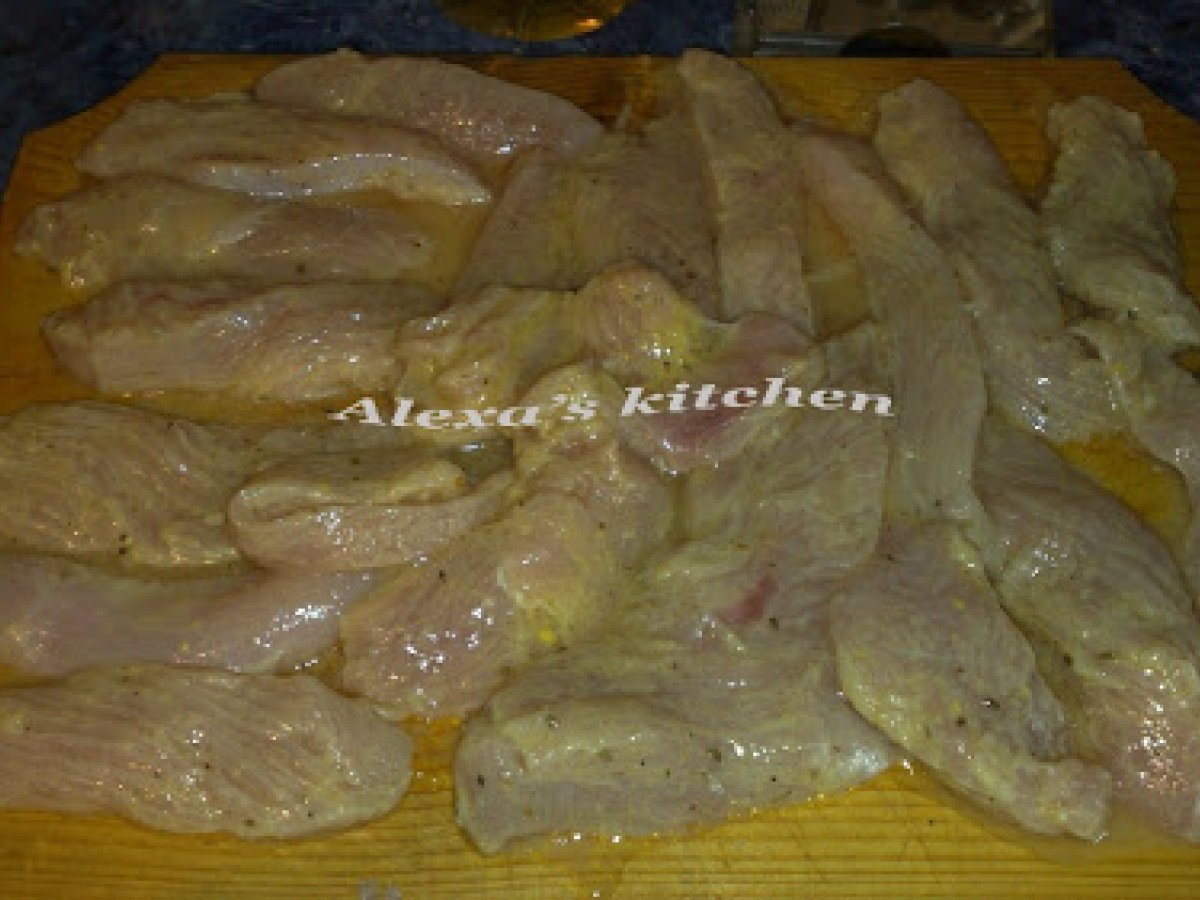 Gujoane fragede PrecedentulUrmătorul Felul principalFoarte ușor50 min55 Kcal Trimite unui prieten Printează pagina Adresează o întrebare autorului Postează o poză cu rețeta gătită de tine Ingrediente 4 fasii din piept de curcan 1 ceasca cu vin alb 1/4 lingurita de miere 1/2 ceasca uleifelii de usturoi 1 lingura mustar busuioc oregano piper macinat Cost estimat: 2.14Euros€ (0.53€/porție)