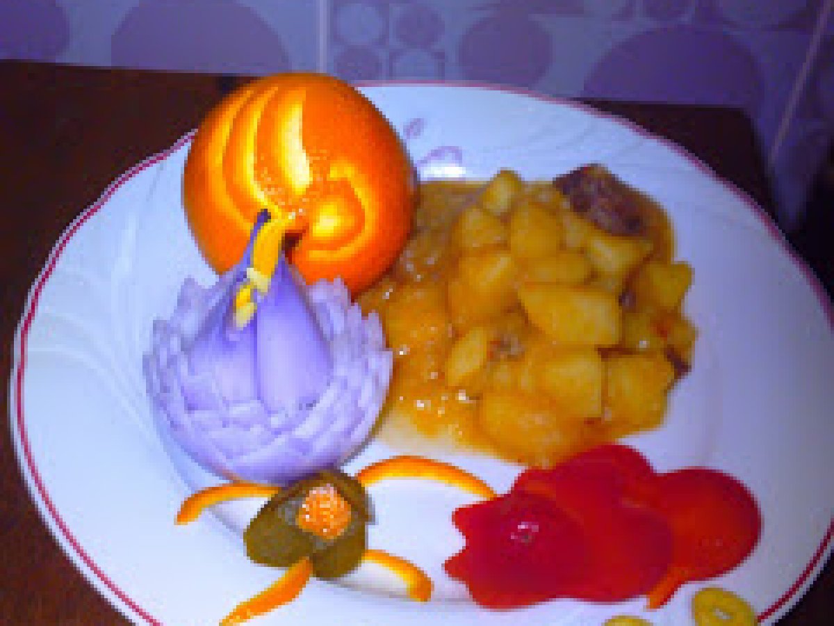 Gulas unguresc cu costita de porc PrecedentulUrmătorul Felul principalFoarte ușor30 min Trimite unui prieten Printează pagina Adresează o întrebare autorului Postează o poză cu rețeta gătită de tine Ingrediente 4 7 cartofi mari, 400 g .de costita proaspata sau afumata, 2 cepe, 1 ardei,putin curry, piper,boia, vegeta, o foaie de dafin, 150 ml.bulion, 2 morcovi, 1 patrunjel, ulei sare.
