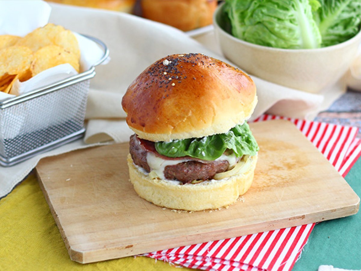 Astazi facem hamburger de casa! Si pentru a il face mai gustos, am adaugat branza raclette :-) Serviti cu cartofi prajiti si suntem siguri ca veti multumi pe toata familia.