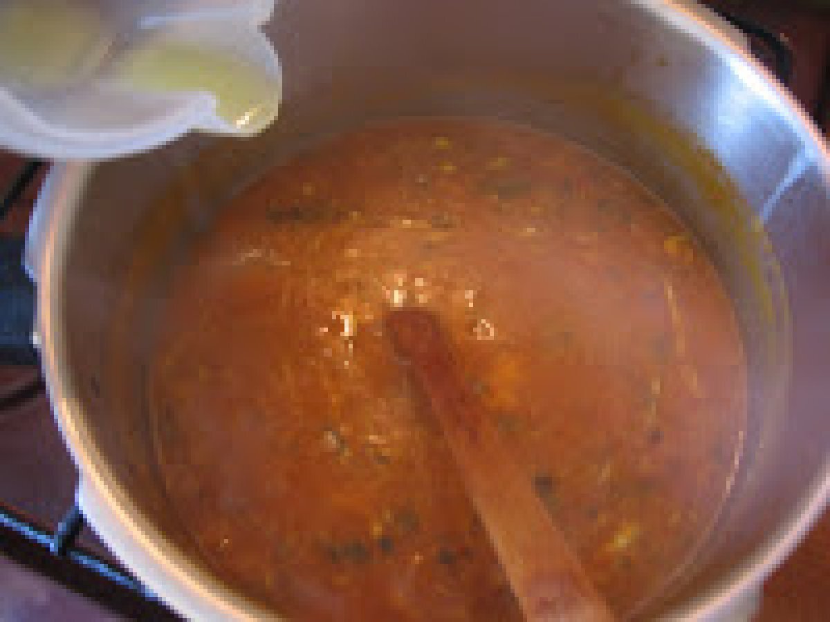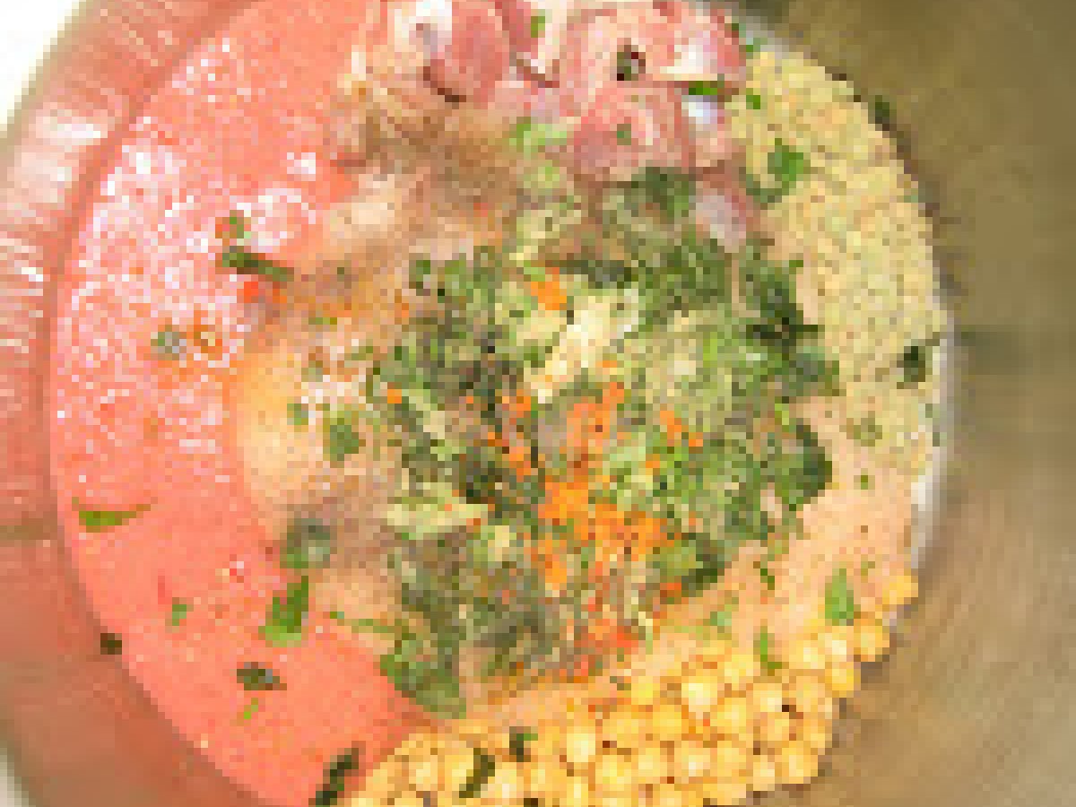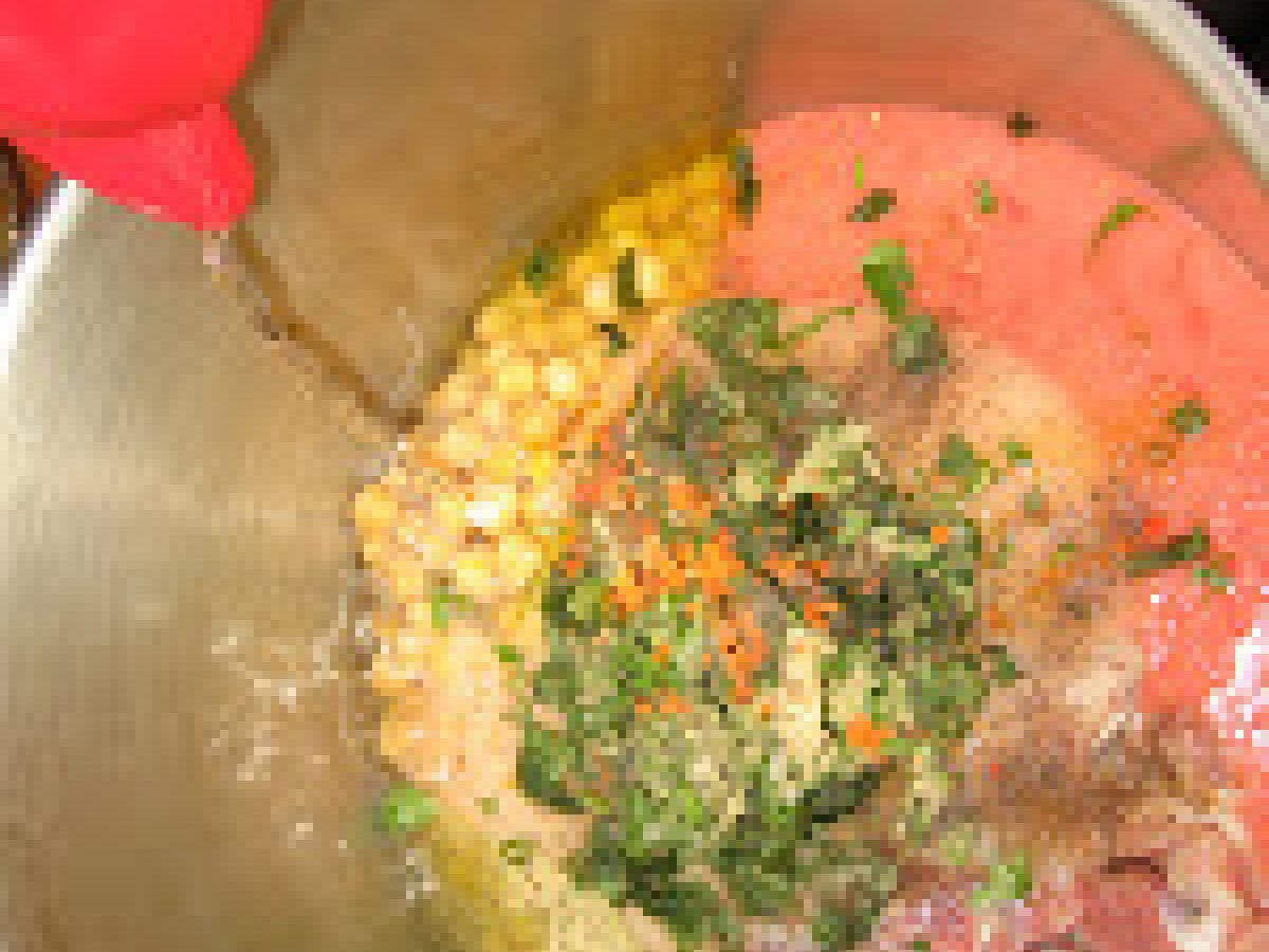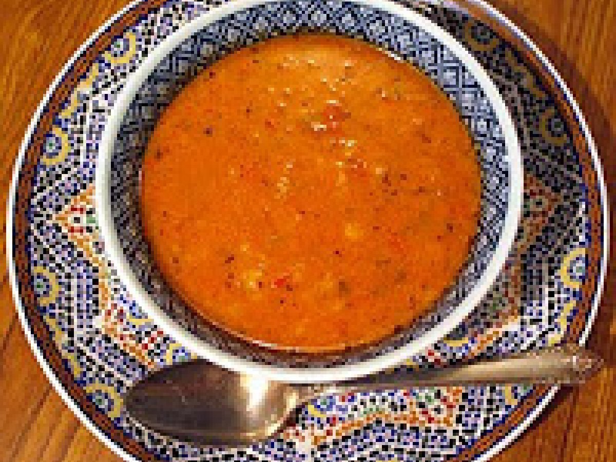 Harira supa marocana PrecedentulUrmătorul Felul principalFoarte ușor1 oră Trimite unui prieten Printează pagina Adresează o întrebare autorului Postează o poză cu rețeta gătită de tine Ingrediente 4 sucul de la 4 rosii proaspate 2 linguri de patrunjel tocat 2 linguri de coriandru proaspat tocat 2 linguri de frunze de telina tocate 1 / 2 ceasca de n?ut, lasat la inmuiat peste noapte 1 / 2 ceasca de linte 1 cub de knorr 1 ceapa mare rasi 200 g de carne în bucati mici (miel, vita sau pui) Saffron (optional) 2 lingura Pasta de tomate 1 litru de apa 2 catei usturoi sare, piper, ghimbir, boia dulce. ulei de masline 1 / 2 ceasca de faina 1 / 2 ceasca de taitei