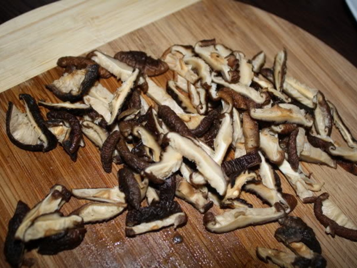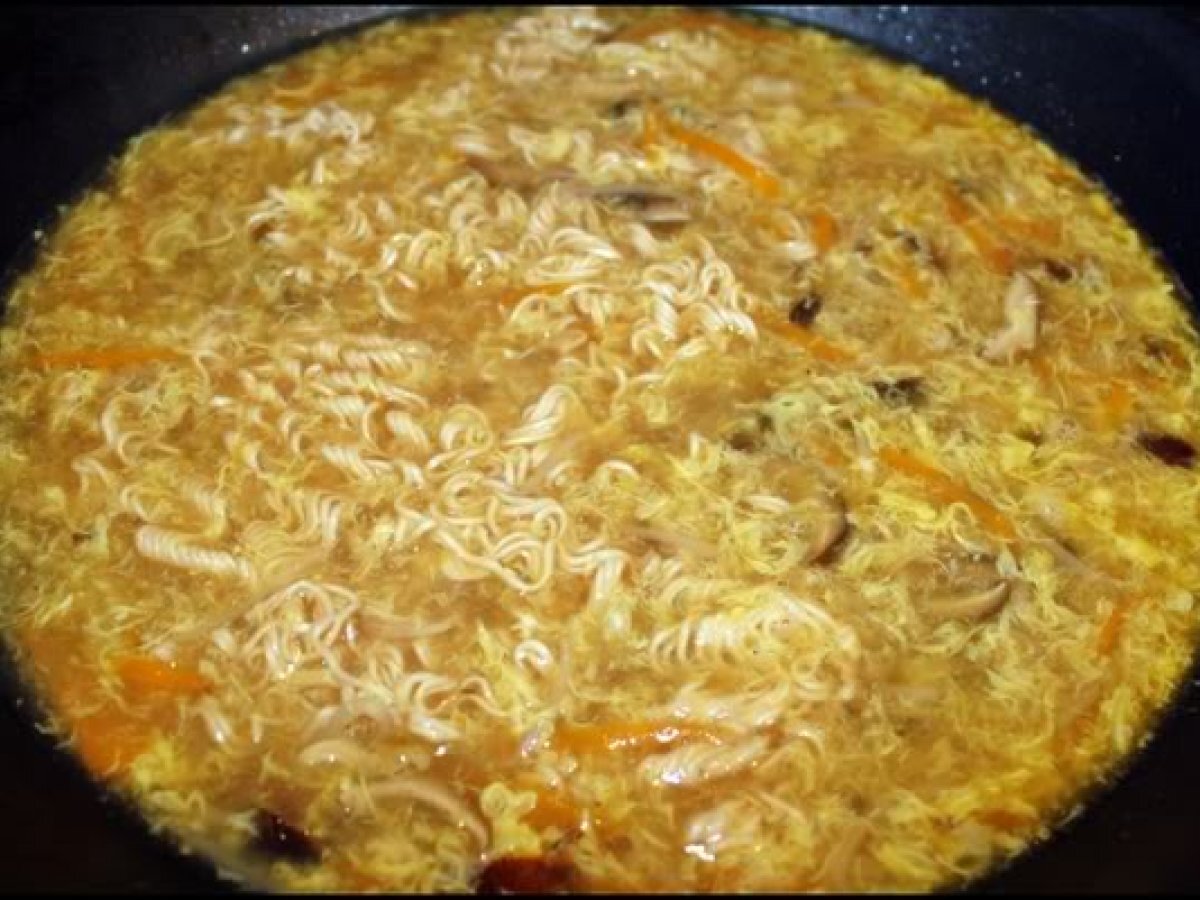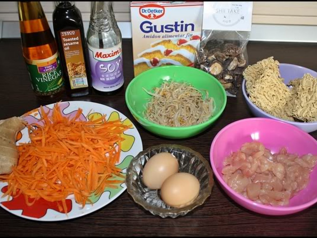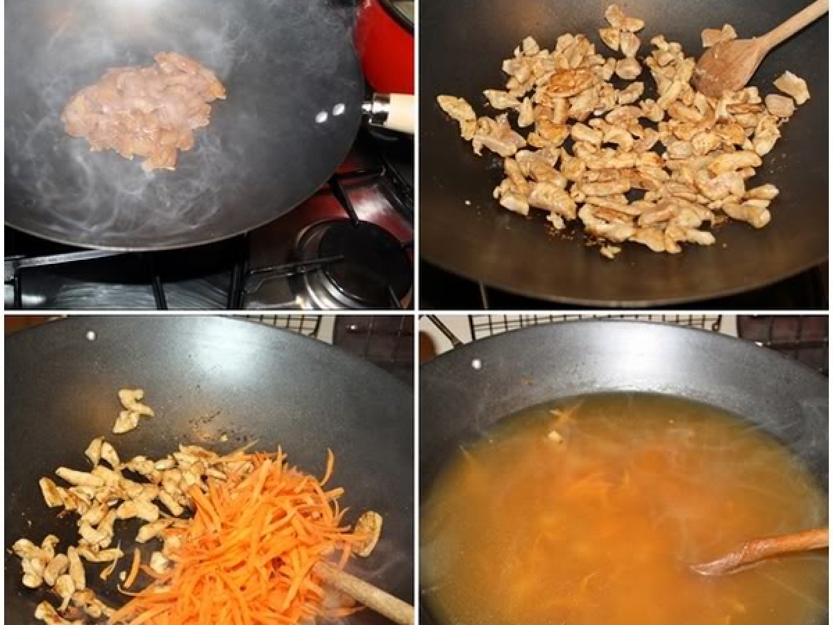Hot & sour chinese soup - supa chinezeasca iute-acra PrecedentulUrmătorul Felul principalFoarte ușor50 min Trimite unui prieten Printează pagina Adresează o întrebare autorului Postează o poză cu rețeta gătită de tine Ingrediente 2 2 + 3 linguri sos soia 2 + 2 linguri ulei susan 2 linguri otet de orez 20 ciuperci shii take deshidratate 100 g muguri soia un morcov taiat julienne 200 g piept pui taiat bucatele mici ghimbir 2 oua 1 lingurita + 2 linguri amidon de porumb 2 pachete taitei chinezesti Vifon supa de pui