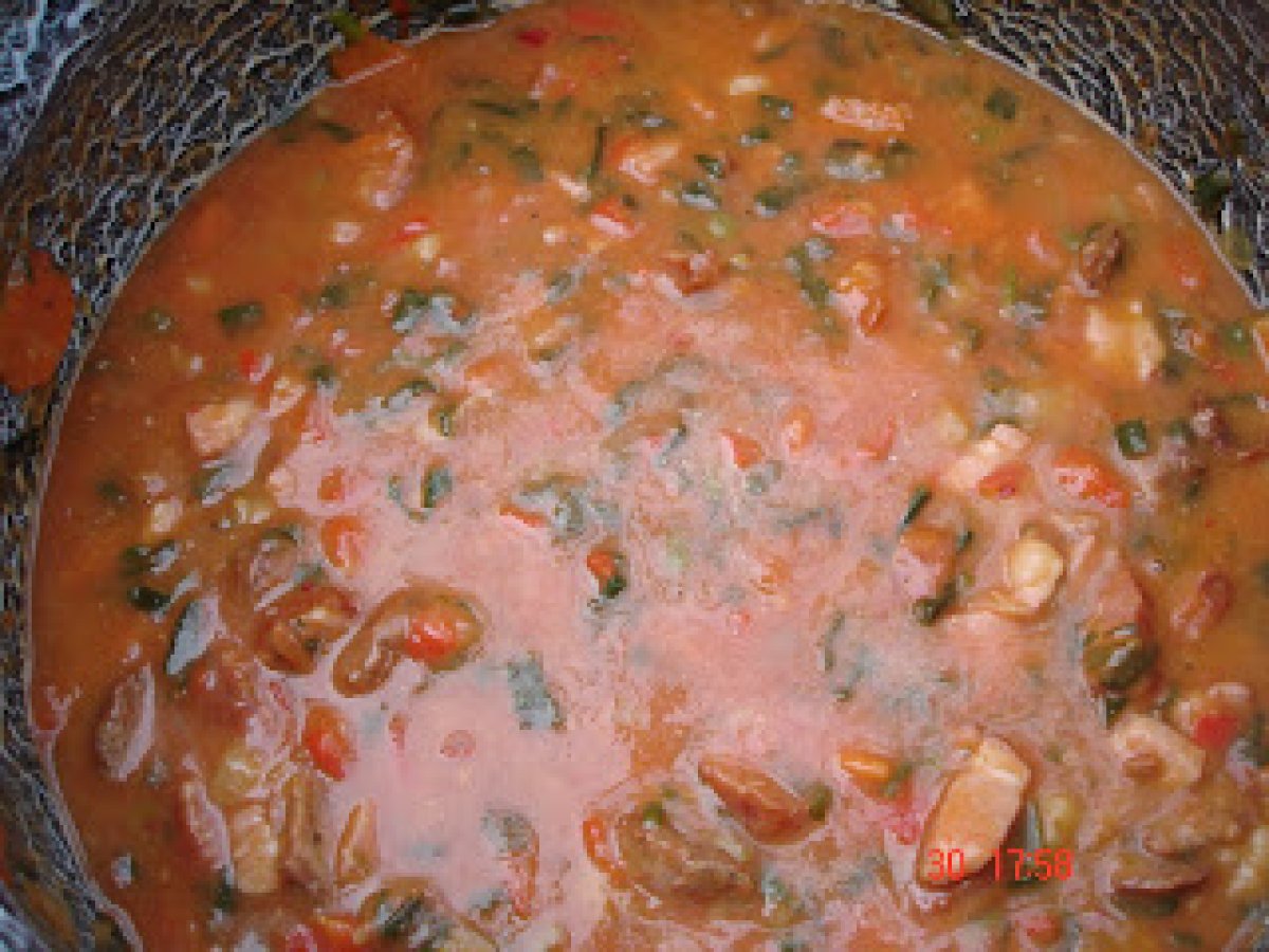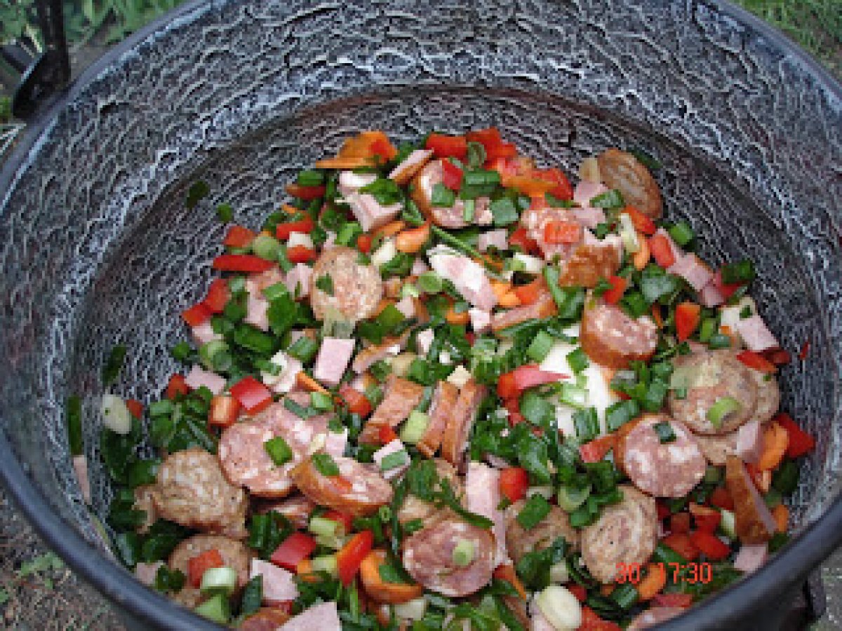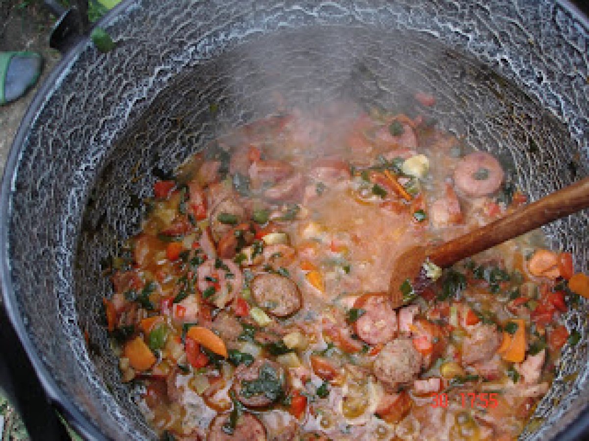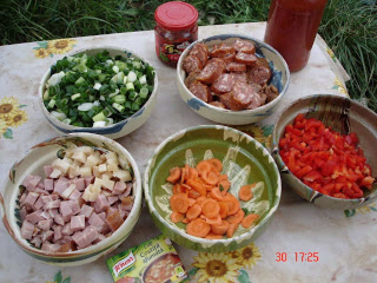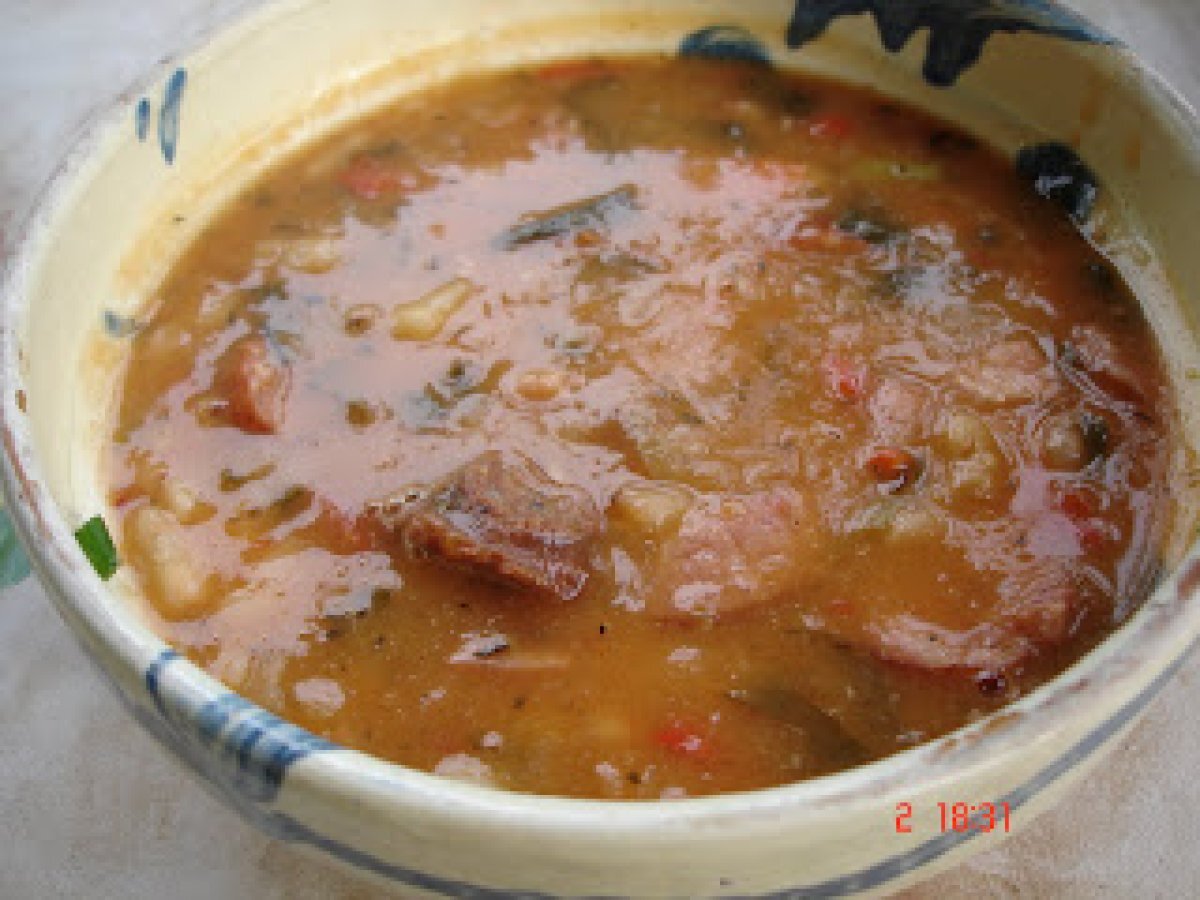 Iahnie de fasole la ceaun PrecedentulUrmătorul Felul principalFoarte ușor1 oră Trimite unui prieten Printează pagina Adresează o întrebare autorului Postează o poză cu rețeta gătită de tine Ingrediente 2 700 g fasole boabe alba fiarta 3 legaturi de ceapa verde 200 g carnat proaspat 400 g carnat afumat 400 g pastrama de ceafa de porc 1 ardei gras rosu 700 ml suc de rosii 1 lingura de untura de porc 1 morcov sare piper pasta de ardei iute boia de ardei cimbru foi de dafin 1 lingura faina alba 2 cuburi Knorr cu gust de costita afumata