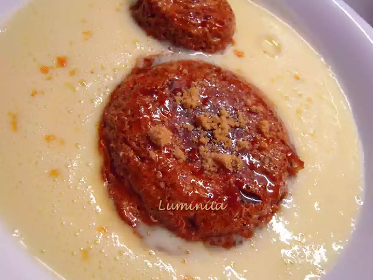 - A caramelizat cateva linguri de zahar si cu el a tapetat peretii unor forme rezitente la foc. A incins cuptorul la 150-160o C. Intr-o craticioara a pus pe foc mic 3-4 linguri de zahar si l-a lasat sa se bronzeze.