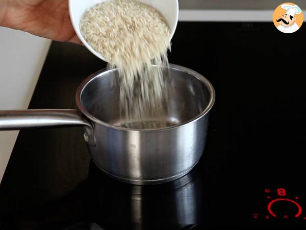 Se fierbe orezul cu 1,5 ori volumul său în apă timp de 10 minute, acoperit.