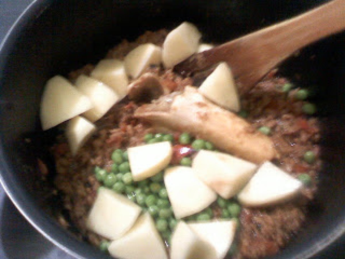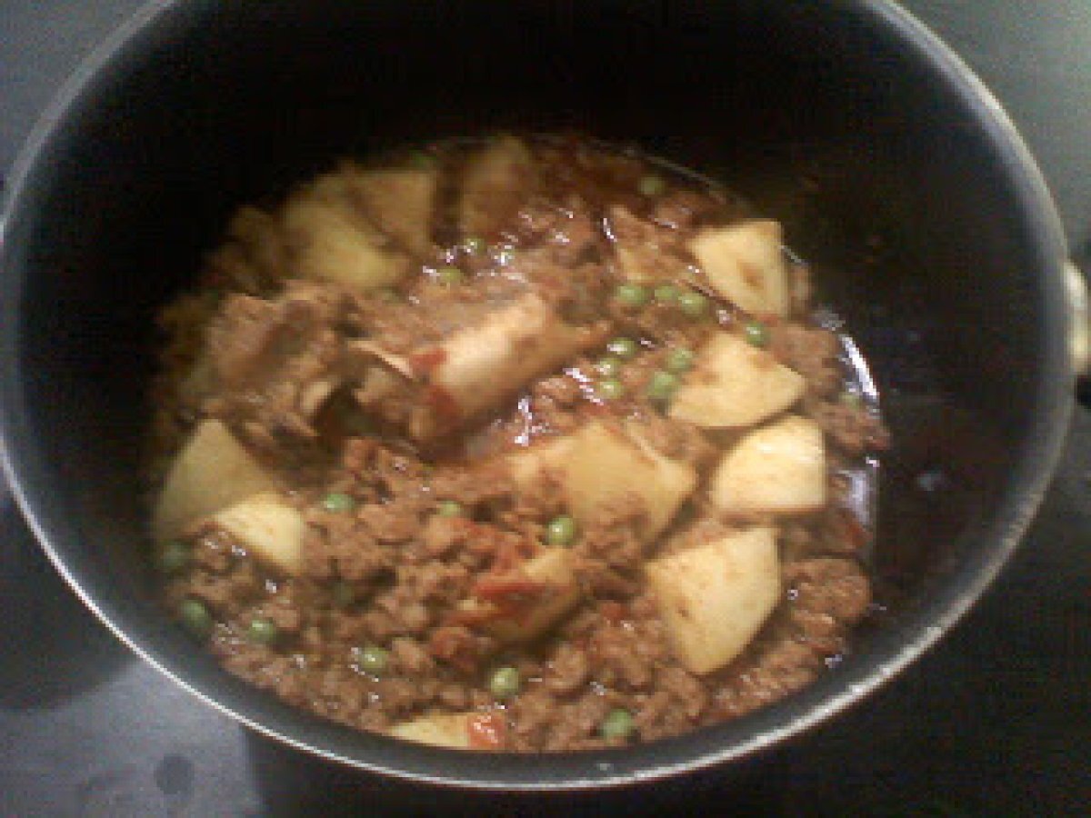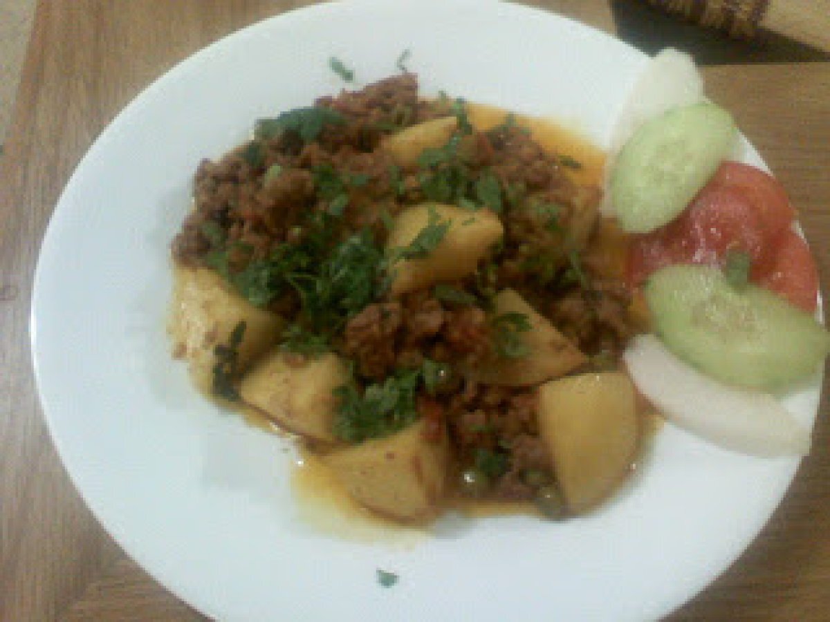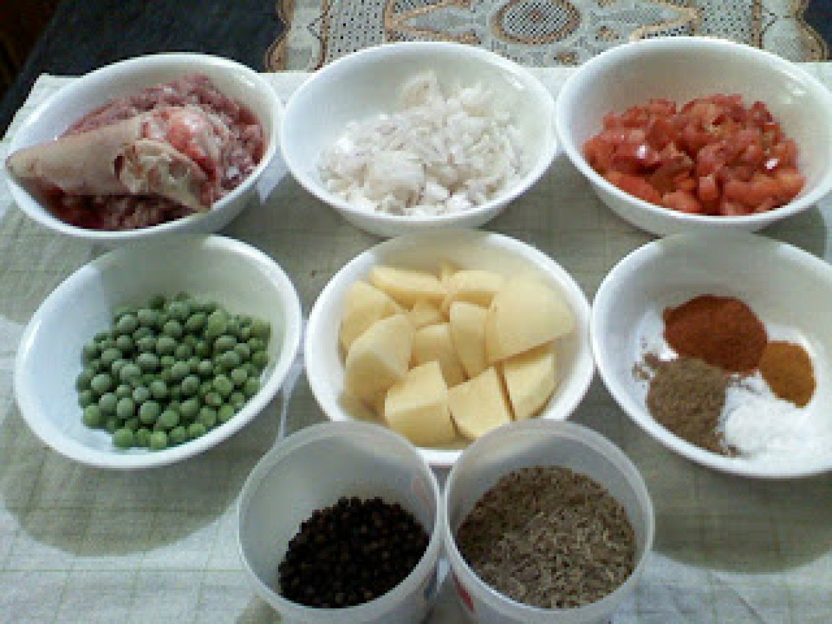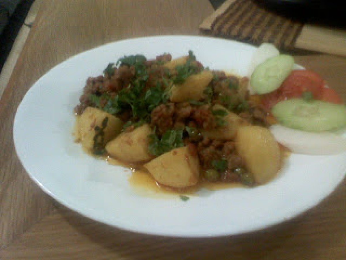 Keema (mancare din carne tocata cu cartofi si mazare) PrecedentulUrmătorul Felul principalFoarte ușor1 oră Trimite unui prieten Printează pagina Adresează o întrebare autorului Postează o poză cu rețeta gătită de tine Ingrediente 4 500 g carne tocata de vita 2 rosii bine coapte 2 cepe potrivite 2 cartofi 4 linguri mazare 3 linguri iaurt 5 linguri ulei de masline 1 lingurita boia de ardei de care va place 1 lingurita pudra de coliandru 1/4 lingurita pudra de turmenic 1 lingurita boabe de piper negru 1 lingurita chimen 1 lingura patrunjel tacat 1/2 lingura menta verde tocata 4 ardei iuti sare cat va place