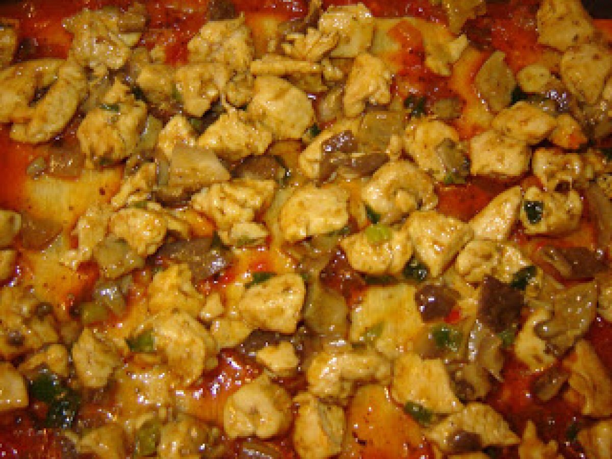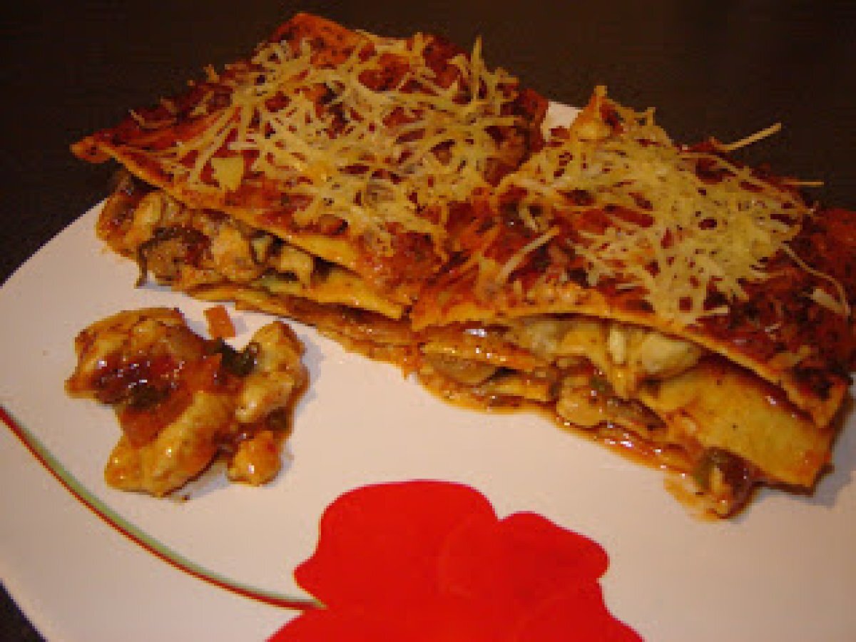 Lasagna cu piept de pui si ciuperci PrecedentulUrmătorul Felul principalFoarte ușor45 min Trimite unui prieten Printează pagina Adresează o întrebare autorului Postează o poză cu rețeta gătită de tine Ingrediente 1 5 foi mari de lasagna 2 bucati piept de pui 250 g ciuperci 2 fire ceapa verde 150 g cascaval condiment de pui curry, oregano piper, boia Sos: 1 ceapa 6 catei de usturoi 100 ml bulion 1 lingura pasta ardei patrunjel verde busuioc sare, piper, boia