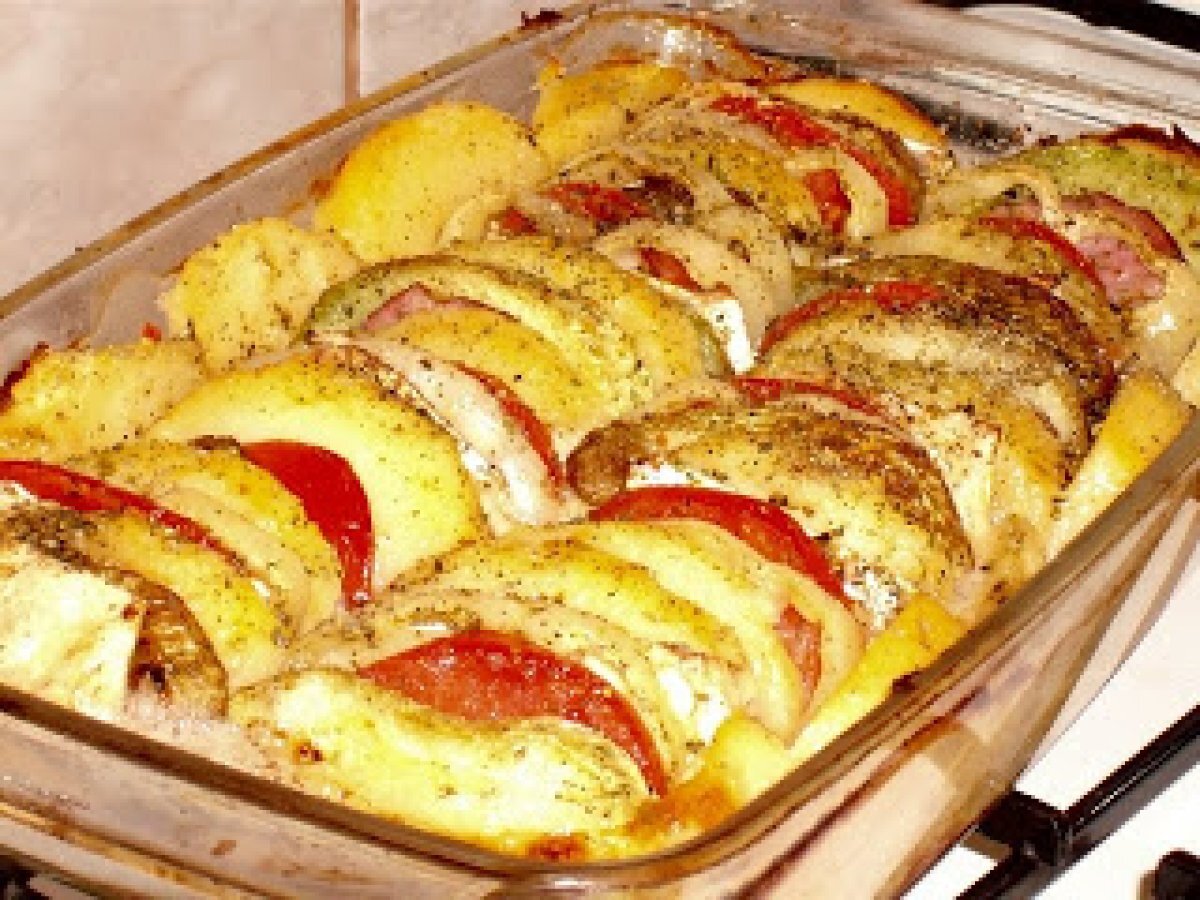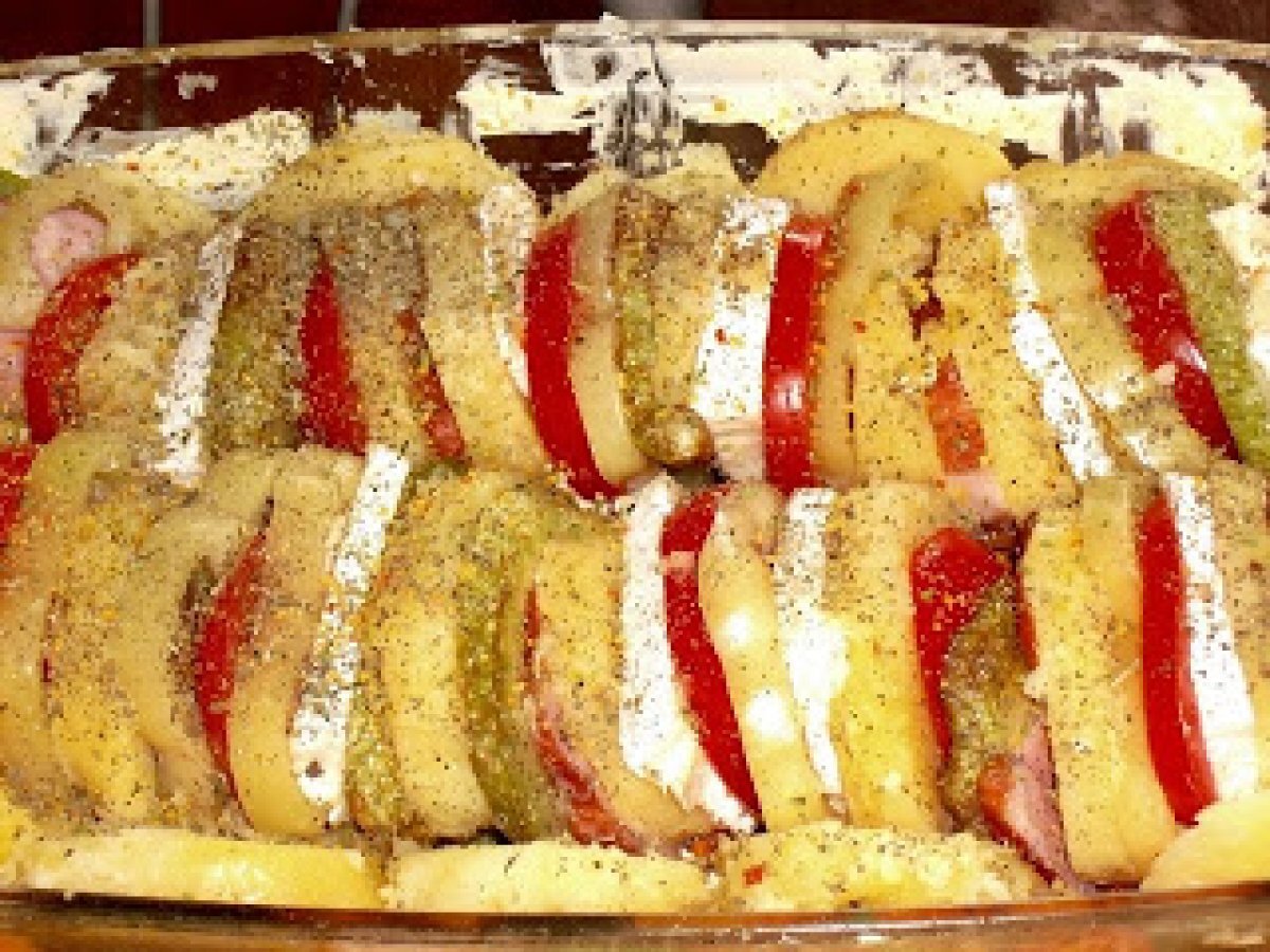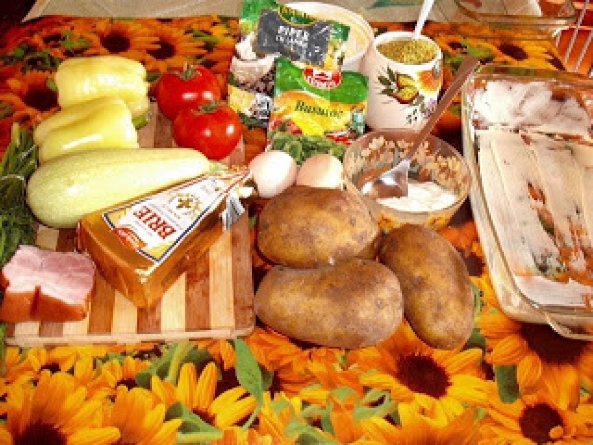 Legume cu branza brie PrecedentulUrmătorul Felul principalFoarte ușor40 min Trimite unui prieten Printează pagina Adresează o întrebare autorului Postează o poză cu rețeta gătită de tine Ingrediente 4 600 g cartofi 2-3 rosii mari si nu foarte coapte un dovlecel potrivit 200 g branza Brie 2-3 ardei grasi verzi 100 g masline negre feliate o lingura de smantana 2 oua cateva fire de marar verde 50 ml ulei de masline un praf de sare un praf de piper cu gust de lamaie un praf de busuioc uscat si maruntit o lingura de unt cateva frunze de busuioc pentru decor