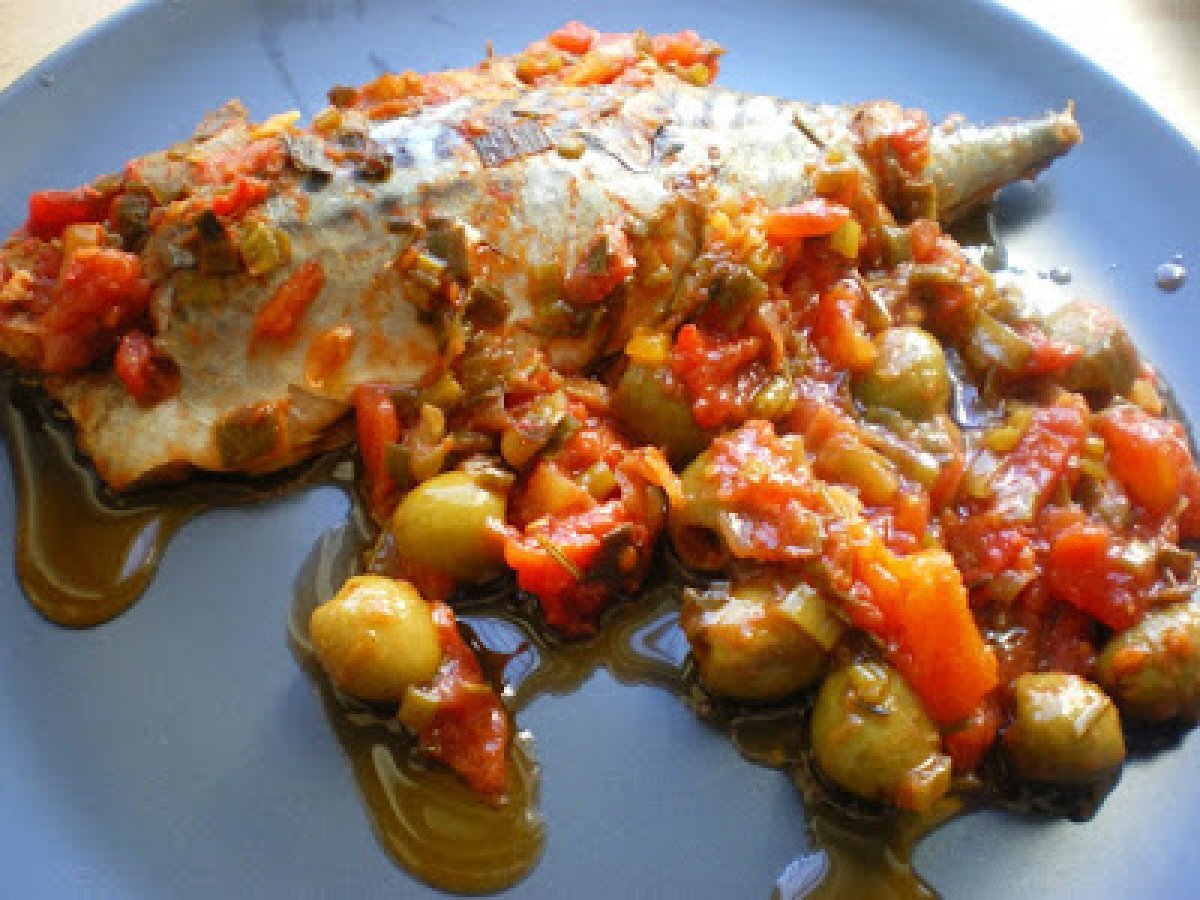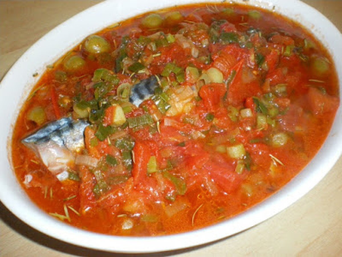 Macrou cu sos la cuptor PrecedentulUrmătorul Felul principalFoarte ușor1 h 10 m Trimite unui prieten Printează pagina Adresează o întrebare autorului Postează o poză cu rețeta gătită de tine Ingrediente 4 macrou 1 legatura de ceapa verde 100 g masline verzi 250 g rosii in sos 2 linguri pasta de tomate ulei de masline rozmarin sare delikat si cimbru
