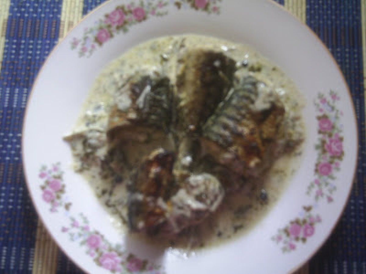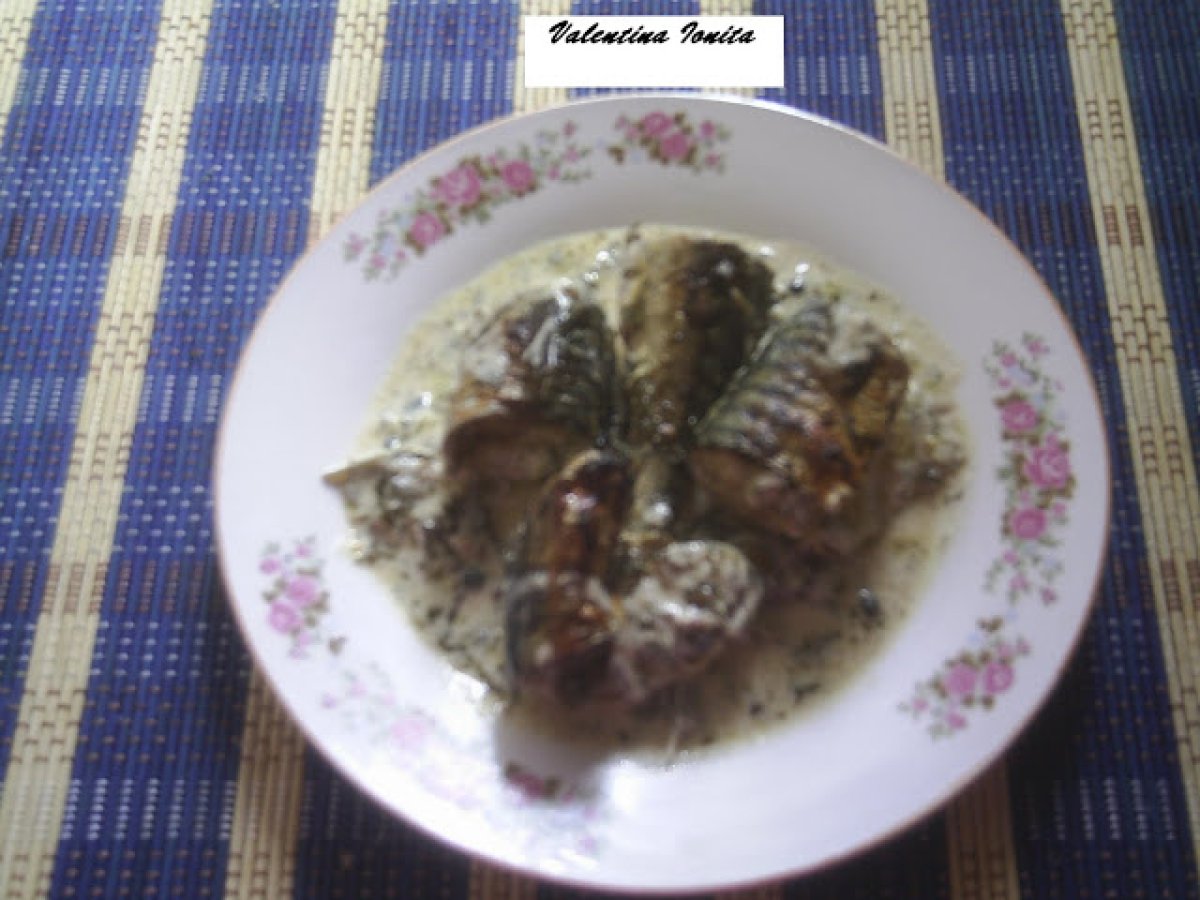 Macrou la cuptor cu sos alb PrecedentulUrmătorul Felul principalFoarte ușor45 min Trimite unui prieten Printează pagina Adresează o întrebare autorului Postează o poză cu rețeta gătită de tine Ingrediente 4 zeama de la o lamaie,patrunjel verde, tarhon verde, 3 lingurite de smantana, 6 linguri de iaurt,un paharel vin alb, putin ulei de masline,sare, piper macinat, 5-6 boabe de piper, 4-5 boabe coriandru, cimbru,un praf de scortisoara, 2 foi de dafin.