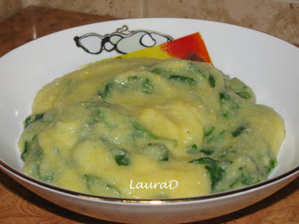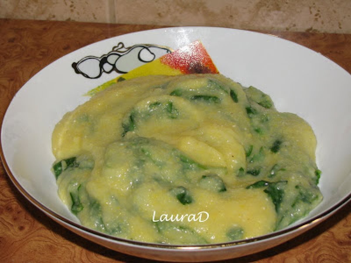 Mamaliga cremoasa cu spanac PrecedentulUrmătorul Felul principalFoarte ușor35 min Trimite unui prieten Printează pagina Adresează o întrebare autorului Postează o poză cu rețeta gătită de tine Ingrediente 2 1 litru apa 175 g faina de malai 15 g sare ½ lingurita sare de mare cu ierburi aromate 175 g smantana 2 catei de usturoi, tocati marunt 150 g frunze proaspete de spanac
