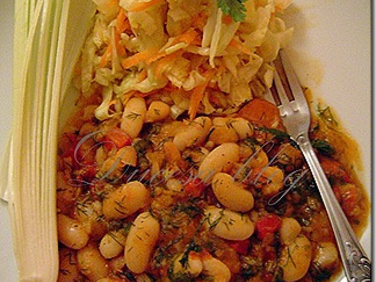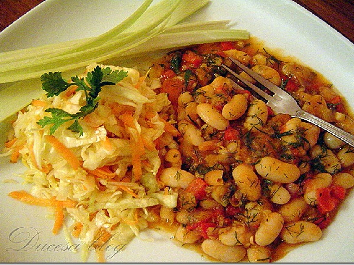 Mancare de fasole cu marar PrecedentulUrmătorul Felul principalFoarte ușor50 min Trimite unui prieten Printează pagina Adresează o întrebare autorului Postează o poză cu rețeta gătită de tine Este o fasole dietetica, fara ulei prajit sau fiert, si extrem de delicioasa ! Ingrediente 4 300 g fasole boabe(noua) 1 morcov, 1 telina mica, 1 radacina patrunjel 1 fir praz, 2 cepe 1 ardei rosu piure de rosii sau bulion-2 lingurite vegeta, piper, cimbru 6 catei usturoi, 2 linguri ulei presat la rece 2 legaturi marar