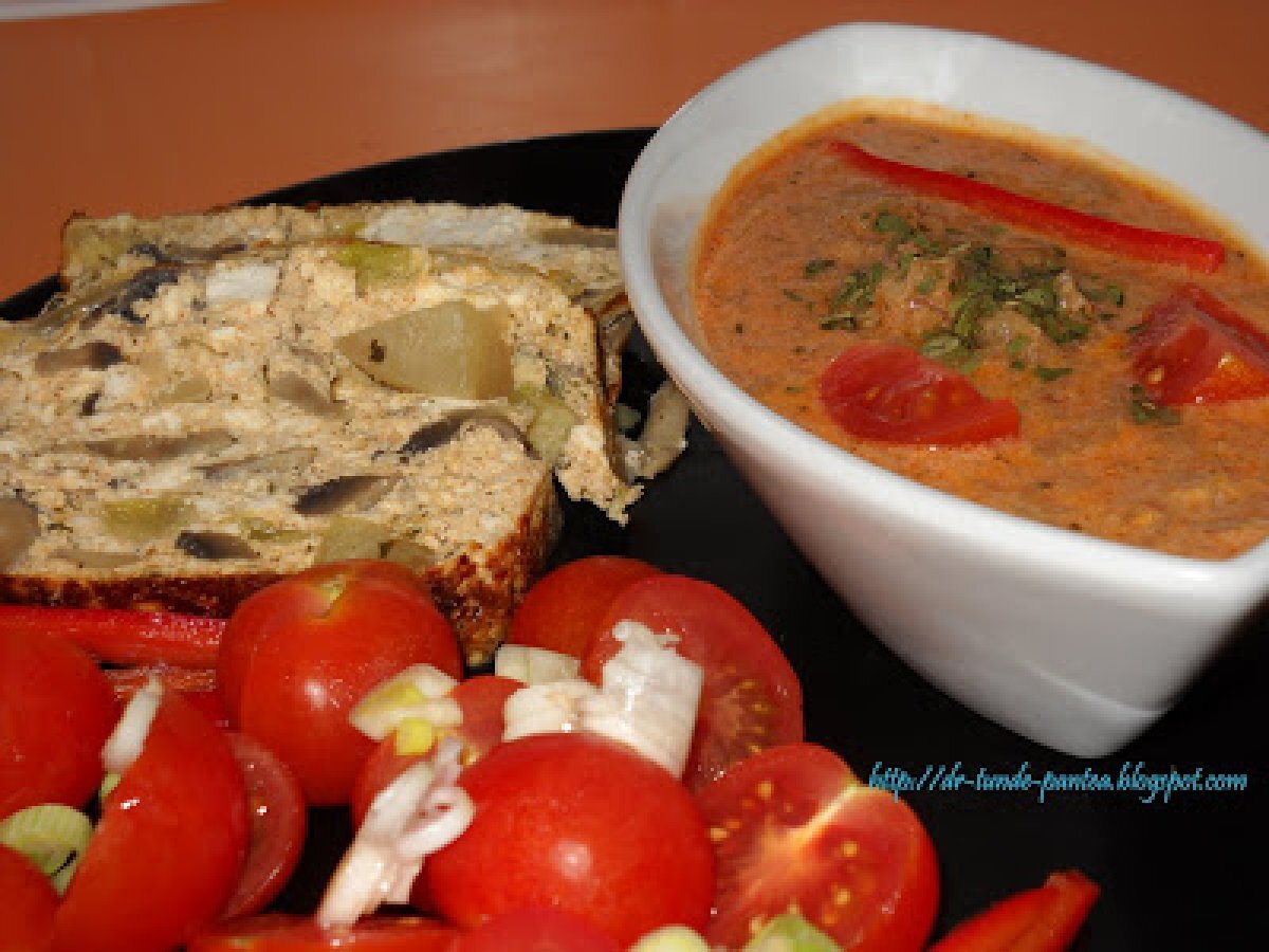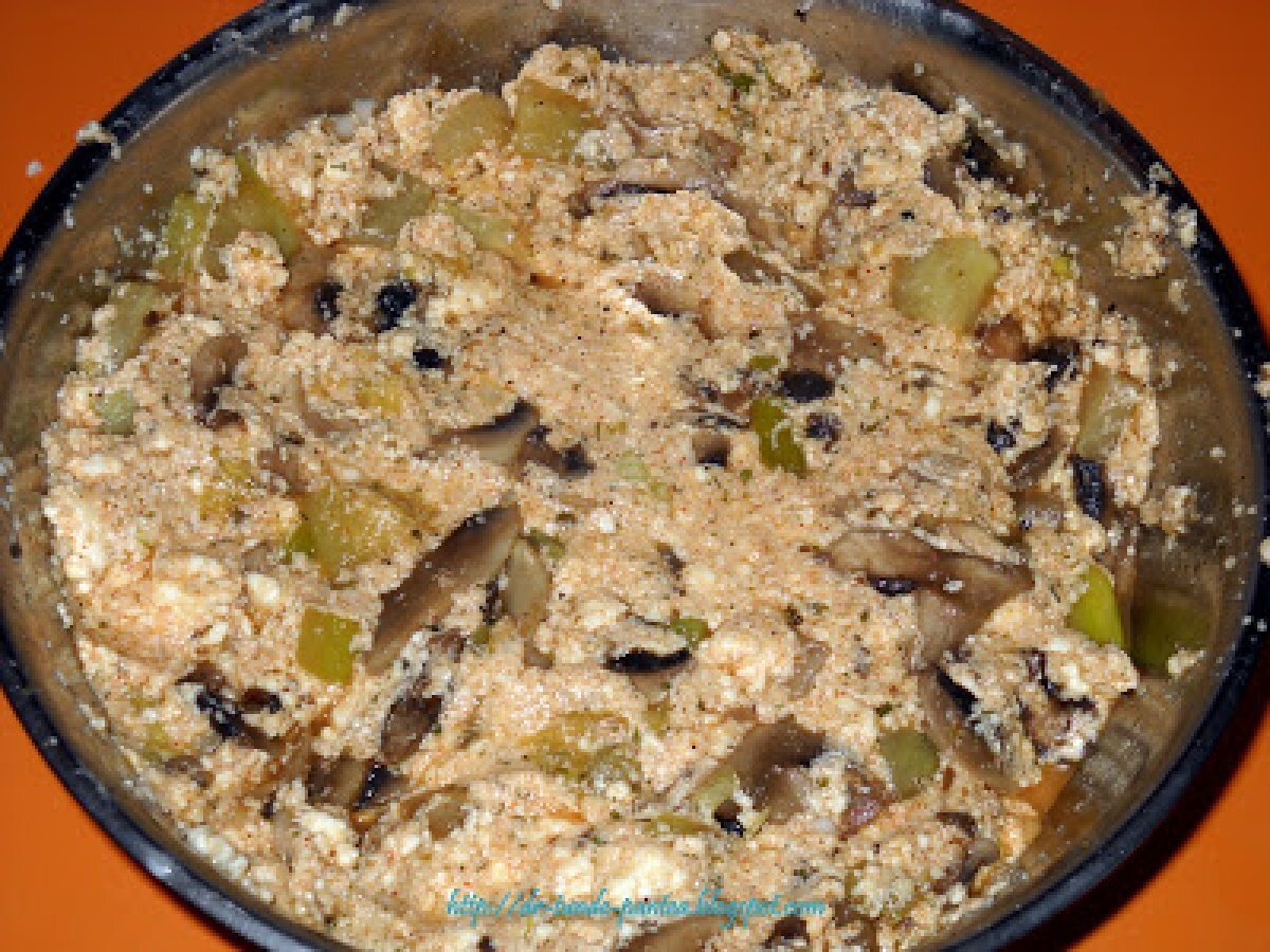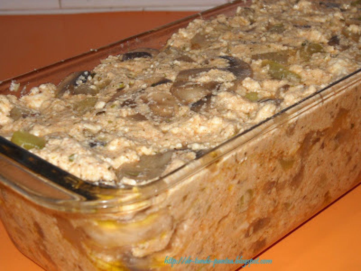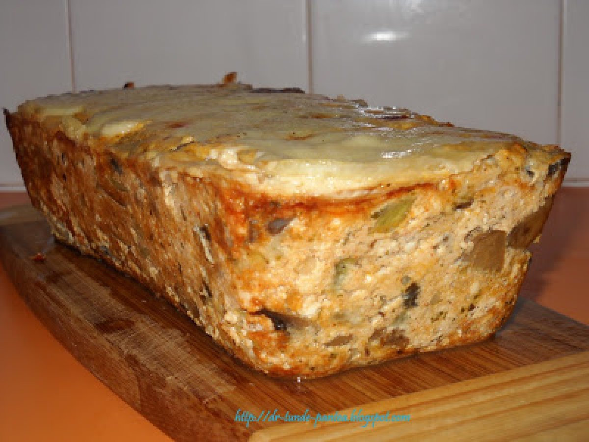 Mancare de vinete cu chec din legume si urda (montignac) PrecedentulUrmătorul Felul principalFoarte ușor1 oră Trimite unui prieten Printează pagina Adresează o întrebare autorului Postează o poză cu rețeta gătită de tine Ingrediente 4 Pentru mancarea de vinete: 3 vinete proaspete o ceapa un catel de usturoi 2 linguri de ulei de masline 3 linguri de smantana 2 linguri de faina de soia o lingurita de boia rosu 100 ml de suc de rosii sare, piper tarhon si leustean Ingrediente pt chec apreritic cu legume si urda urda 500 g 5 oua intregi un dovlacel o gulie 500 g ciuperci un catel de usturoi o legatura de ceapa verde condimente - eu am folosit condiment de pizza 6 felii subtiti de mozzarela