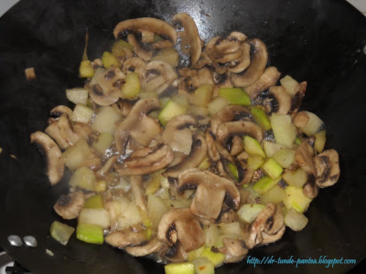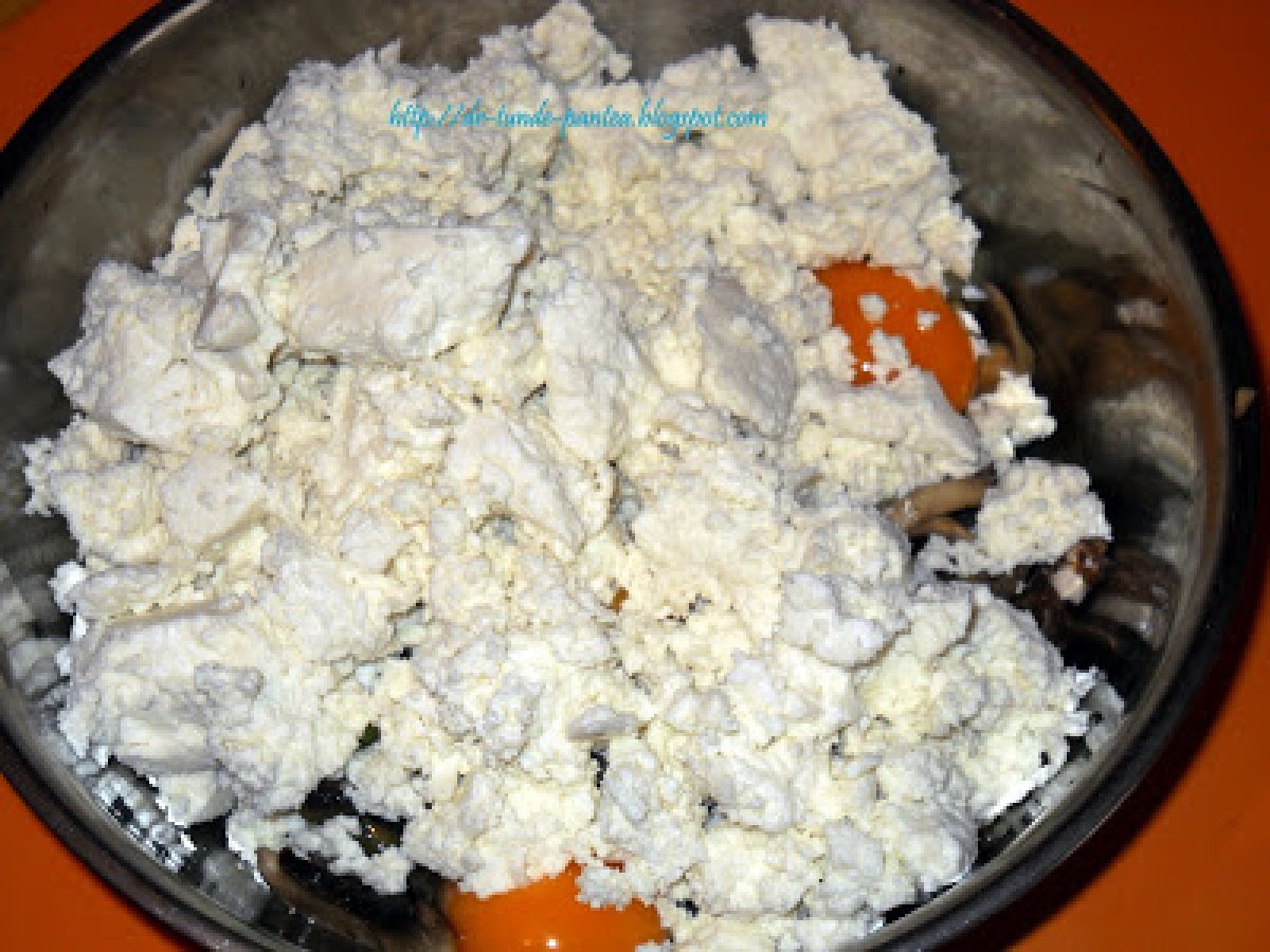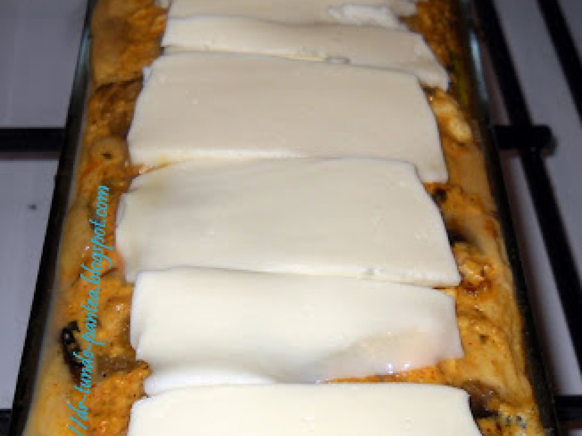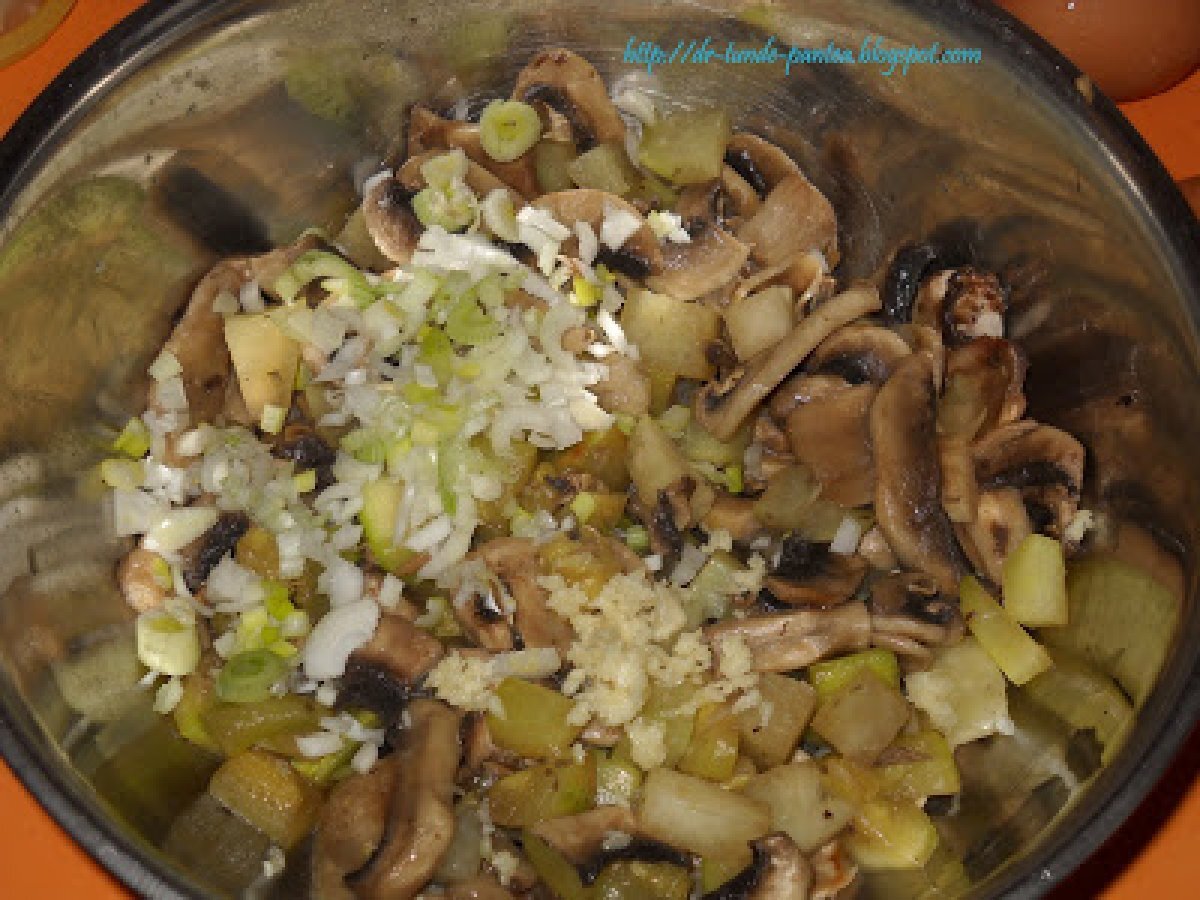 Mancare de vinete cu chec din legume si urda (montignac) PrecedentulUrmătorul Felul principalFoarte ușor1 oră Trimite unui prieten Printează pagina Adresează o întrebare autorului Postează o poză cu rețeta gătită de tine Ingrediente 4 Pentru mancarea de vinete: 3 vinete proaspete o ceapa un catel de usturoi 2 linguri de ulei de masline 3 linguri de smantana 2 linguri de faina de soia o lingurita de boia rosu 100 ml de suc de rosii sare, piper tarhon si leustean Ingrediente pt chec apreritic cu legume si urda urda 500 g 5 oua intregi un dovlacel o gulie 500 g ciuperci un catel de usturoi o legatura de ceapa verde condimente - eu am folosit condiment de pizza 6 felii subtiti de mozzarela