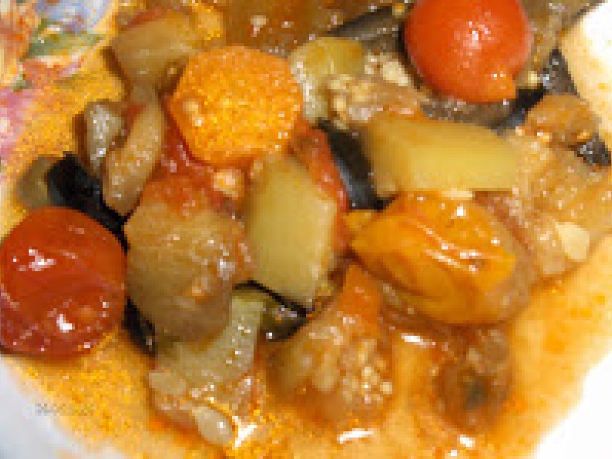 Mancare de vinete Felul principalFoarte ușor30 min Trimite unui prieten Printează pagina Adresează o întrebare autorului Postează o poză cu rețeta gătită de tine Ingrediente 4 vinete 2 buc dovlecei 2 buc ceapa 1 buc rosii cherry 1 mana morcov o rosie mare 1 ardei gras masline 100 g usturoi 2-3 catei ulei
