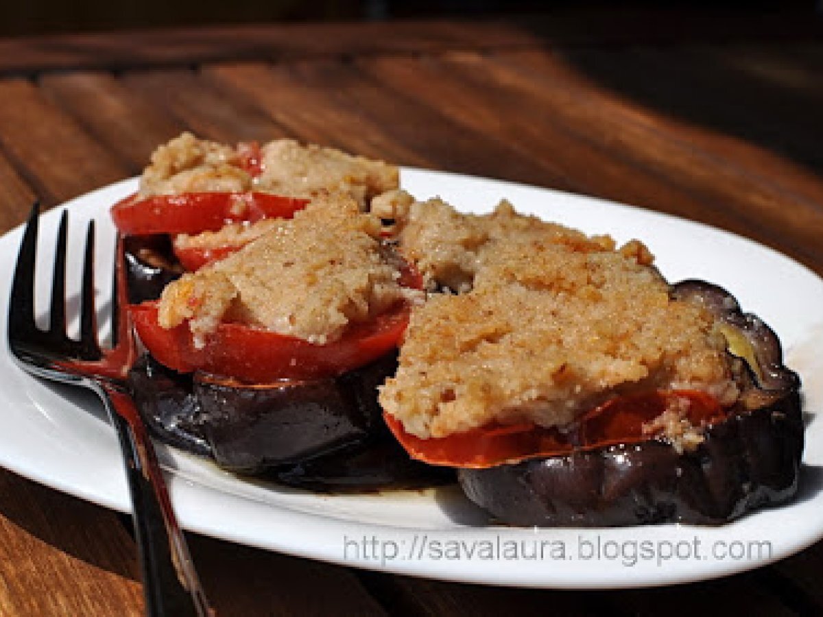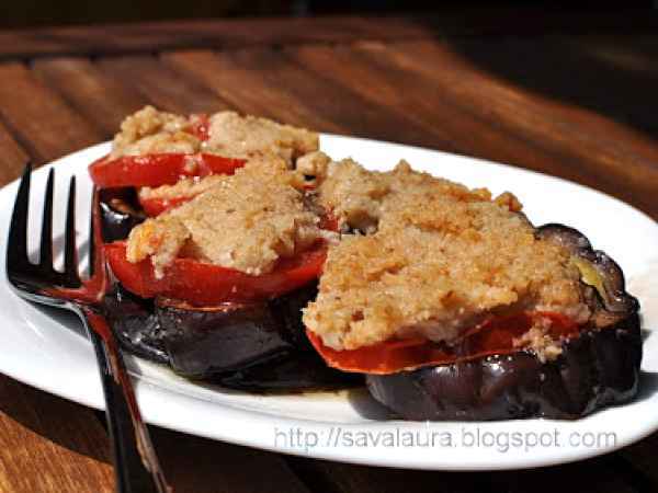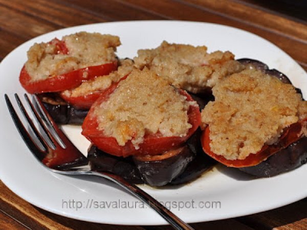 Mancare de vinete la cuptor PrecedentulUrmătorul Felul principalFoarte ușor40 min Trimite unui prieten Printează pagina Adresează o întrebare autorului Postează o poză cu rețeta gătită de tine Ingrediente 4 4 vinete mijlocii 4 rosii 2 cepe 2 catei de usturoi 5 linguri ulei 100 g. pesmet 1 varf cutit oregano sare, piper