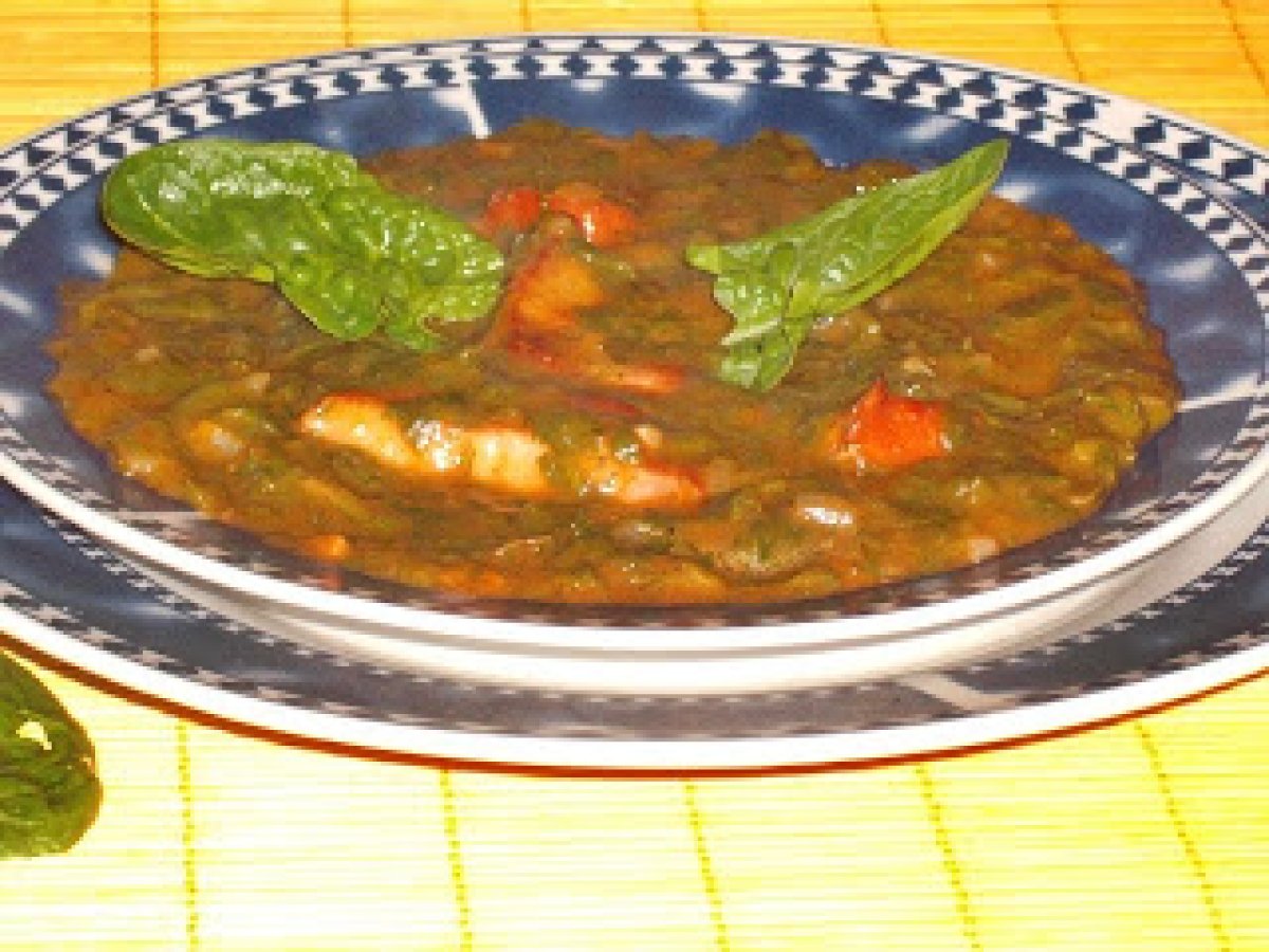 Mancarica de spanac verde cu costita afumata PrecedentulUrmătorul Felul principalFoarte ușor40 min Trimite unui prieten Printează pagina Adresează o întrebare autorului Postează o poză cu rețeta gătită de tine Ingrediente 4 Cantati; cca 1 kg de frunze tinere de spanac 200 g costita afumata(se poate folosi kaizer sau carnaciori) o ceapa mare o lingura rasa de faina o lingura pasta de tomate 50 ml ulei de masline un praf de sare un praf de piper o legatura de marar verde