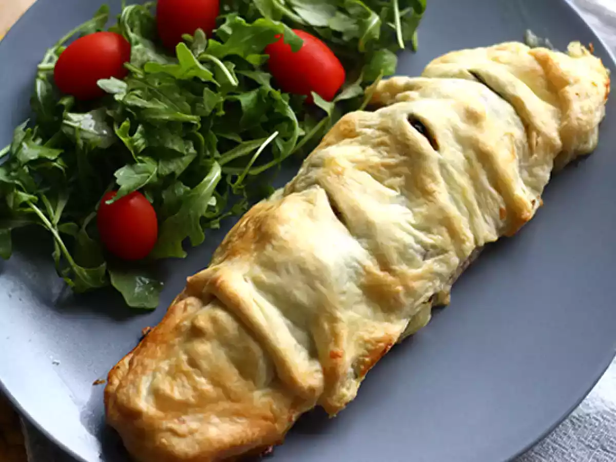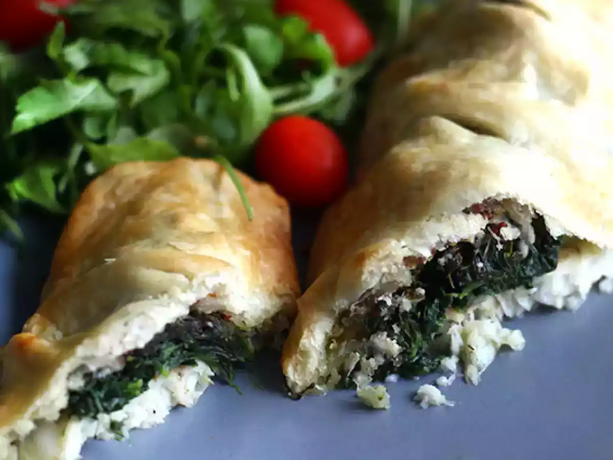Puneti aceasta reteta in meniu! Cat despre legume, combinatia perfecta de arome va fi cea cu spanac ;-) Datorita aluatului foietaj din jurul preparatului, veti obtine un rezultat crocant la exterior si fraged la interior.