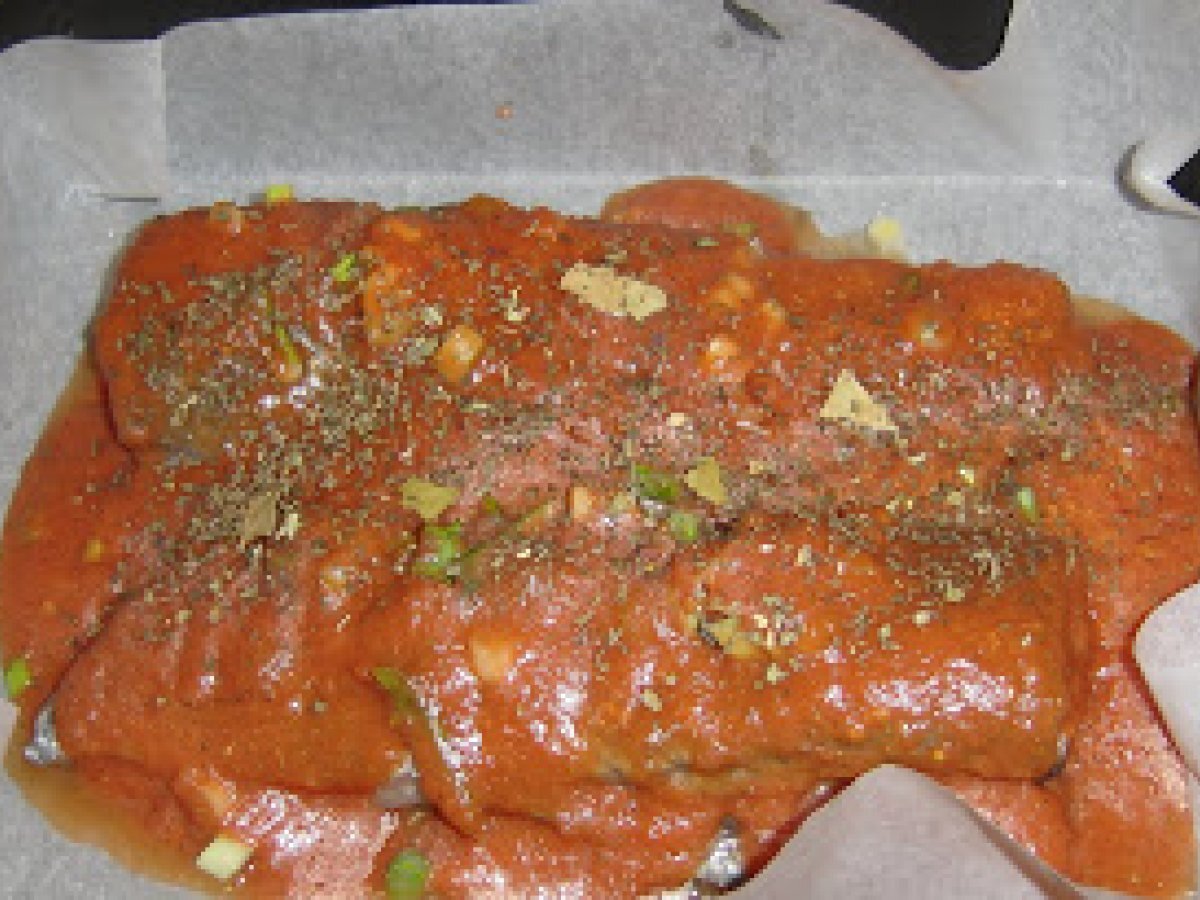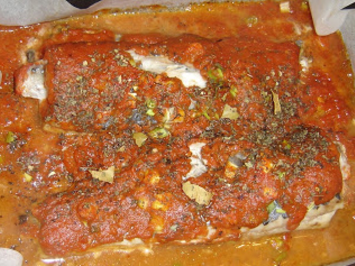 Merluciu in sos de rosii la cuptor PrecedentulUrmătorul Felul principalFoarte ușor1 h 20 m Trimite unui prieten Printează pagina Adresează o întrebare autorului Postează o poză cu rețeta gătită de tine Ingrediente 4 2 bucati merluciu o conserva rosii in sos propriu 3 catei usturoi 3 fire ceava verde 1 linugra ulei de masline 1 linugra zahar 1 liningurita sare sare busuioc menta cimbru oregano o foaie de dafin piper