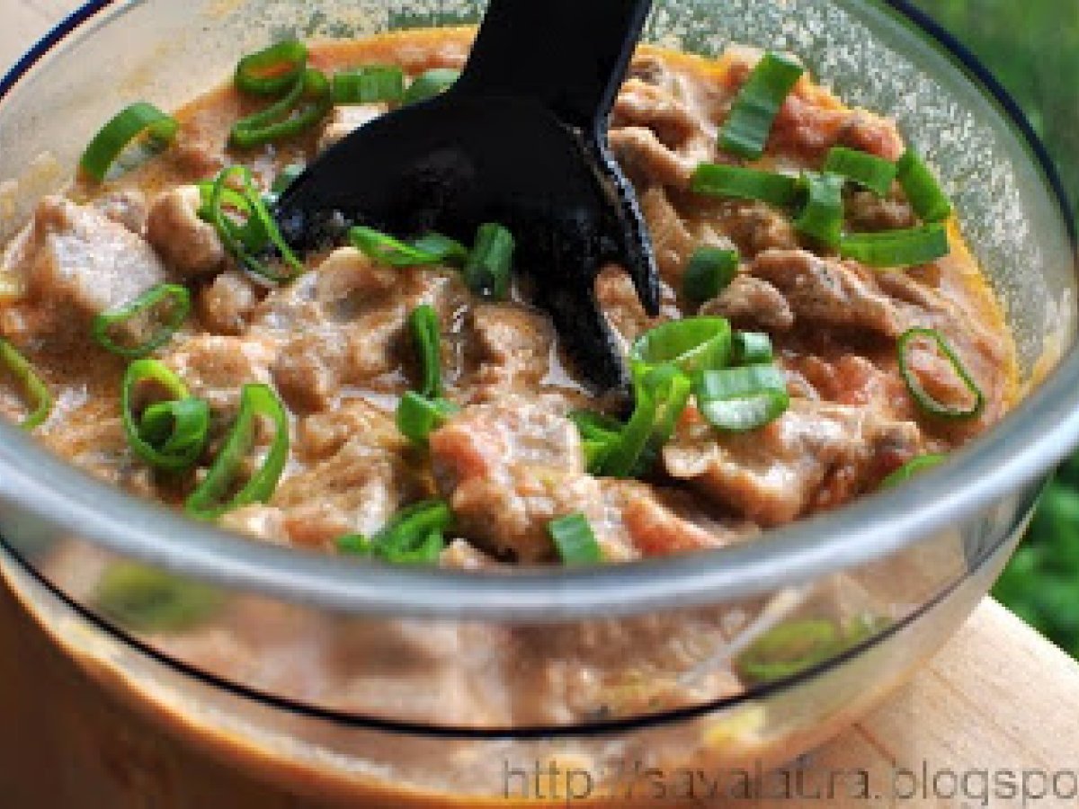 Miel cu sos de iaurt votează acum PrecedentulUrmătorul Felul principalFoarte ușor40 min Trimite unui prieten Printează pagina Adresează o întrebare autorului Postează o poză cu rețeta gătită de tine Ingrediente 4 800 g. carne macra de miel 300 ml. iaurt zeama de la 1/2 de lamaie 1 lingurita sare 4-5 linguri ulei 2 cepe mijlocii, taiate felii sau 5-6 legaturi de ceapa verde 1 lingurita (rasa) boia iute 2 lingurite chimen, macinat 1 lingurita seminte de coriandru, macinate 400 g. rosii proaspete decojite sau din conserva 2 ardei mici iuti, rosii (optional) garnitura de orez sau cartofi natur