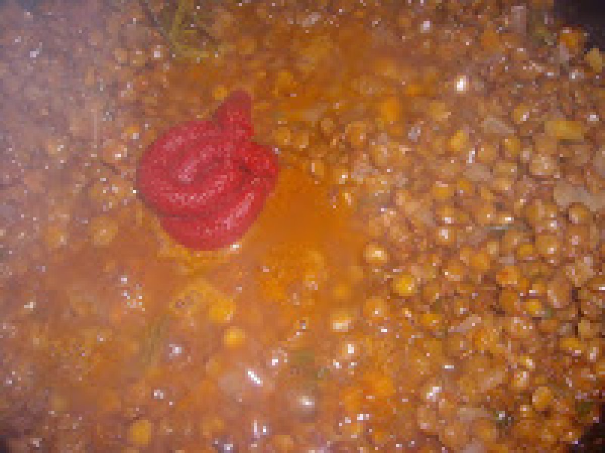 Mincarica de linte cu picior de porc PrecedentulUrmătorul Felul principalFoarte ușor50 min Trimite unui prieten Printează pagina Adresează o întrebare autorului Postează o poză cu rețeta gătită de tine Ingrediente 4 300 g linte 2 morcovi marime mijlocie 1 ceapa o tulpina de telina o ramurica de rozmarin un pahar suc de rosii o lingura concentrat de rosii sare un picior de porc (zampone) 2-3 linguri ulei de masline