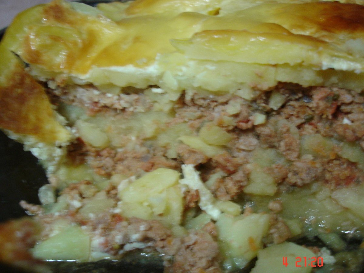 Musaca de cartofi PrecedentulUrmătorul Felul principalUșor1 h 30 m Trimite unui prieten Printează pagina Adresează o întrebare autorului Postează o poză cu rețeta gătită de tine Ingrediente 6 1,5 kg cartofi abi 500g carne tocata amestec 2 cepe 1 morcov 1 cutie cu rosii 2 linguri bulion 3 oua 1 legatura patrunjel 1/2 cana de smantana cascaval ras cateva felii de mozarella