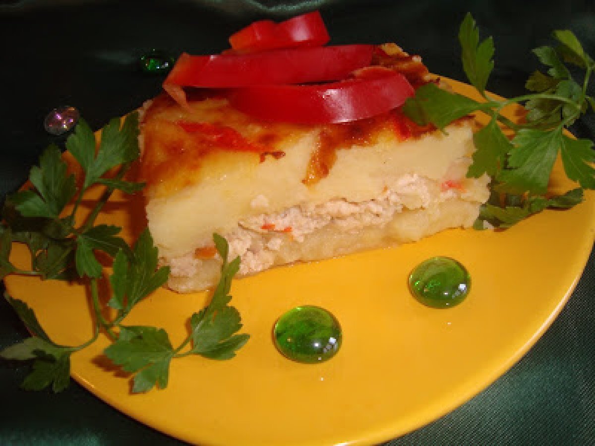 Musaca de piure cu pui PrecedentulUrmătorul Felul principalFoarte ușor50 min536 Kcal Trimite unui prieten Printează pagina Adresează o întrebare autorului Postează o poză cu rețeta gătită de tine Ingrediente 4 1 piept pui 1 kg cartofi 2-3 linguri margarina 1 pahar lapte 1 ardei gras rosu 200 g cascaval 1 ceapa Cost estimat: 5.36Euros€ (1.34€/porție)