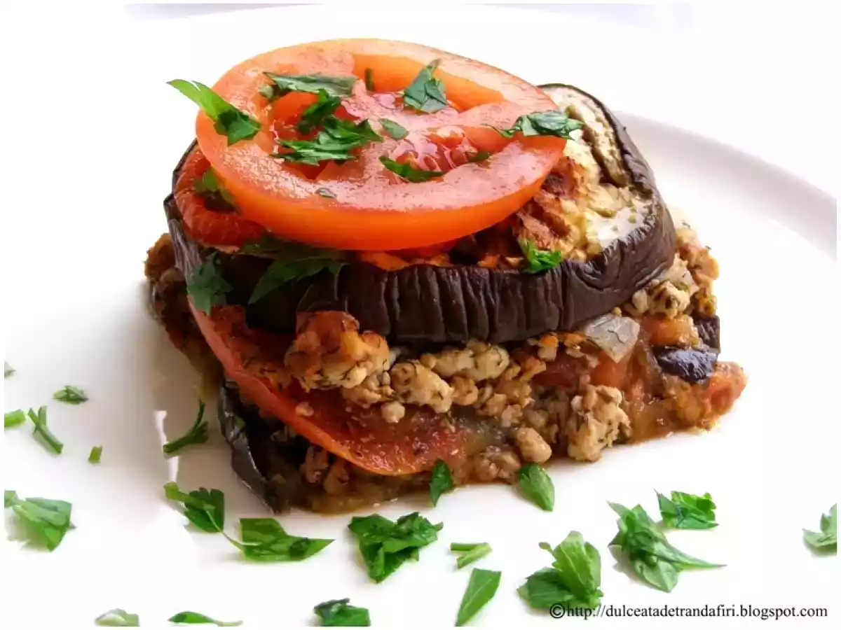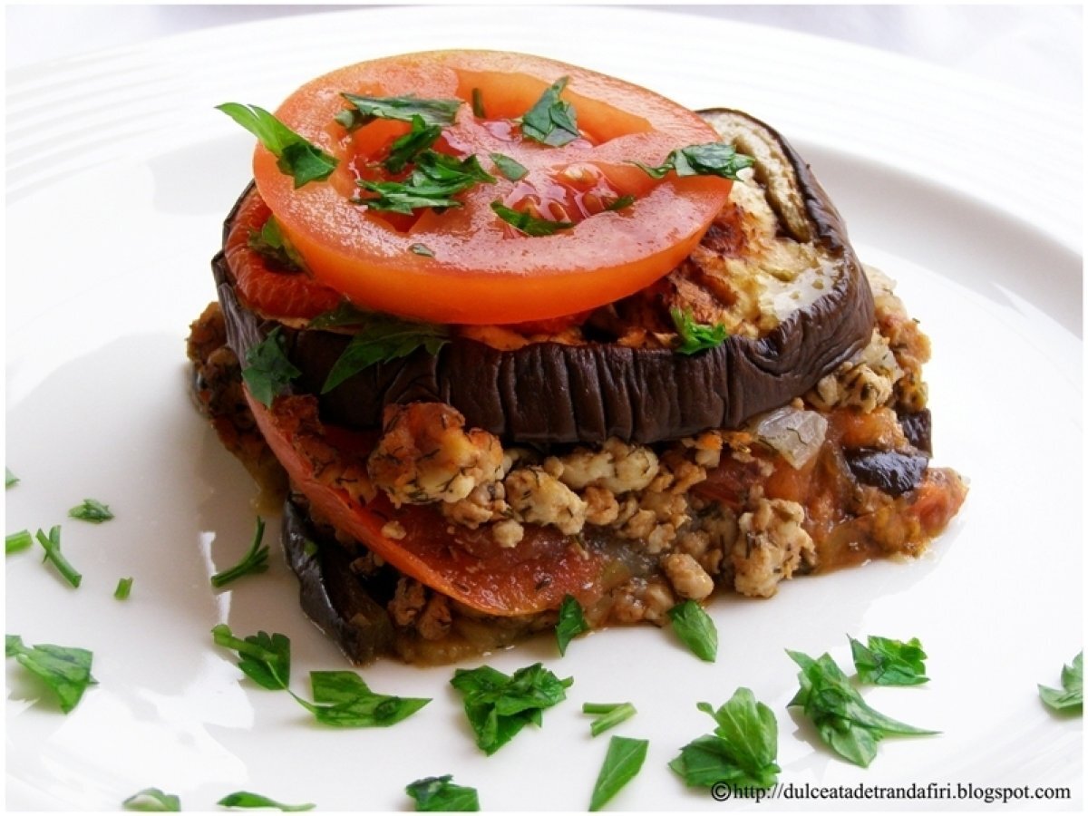 Musaca de vinete PrecedentulUrmătorul Felul principalUșor1 h 30 m Trimite unui prieten Printează pagina Adresează o întrebare autorului Postează o poză cu rețeta gătită de tine Ingrediente 4 Ingredientele sunt pentru 4 portii, deci vei avea nevoie de un vas destul de mic (aprox 20/20cm): 1. 500 gr carne tocata din piept de pui 2. 500 gr de vinete (cam 2 vinete mai marisoare) 3. 1 ceapa mare 4. 2 linguri bulion 5. 400 gr de rosii (cam 4-5 bucati adica) 6. 50 ml ulei de masline 7. 1 legatura patrunjel 8. 1 legatura marar 9. piper, boia dulce, oregano, busuioc, sare
