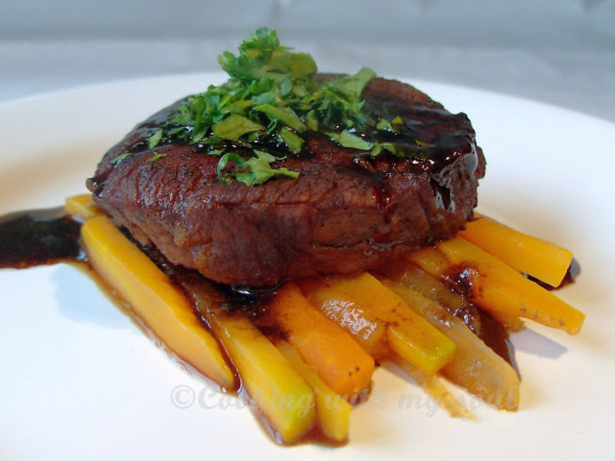 Muschi de vita cu sos de otet balsamic PrecedentulUrmătorul Felul principalFoarte ușor30 min Trimite unui prieten Printează pagina Adresează o întrebare autorului Postează o poză cu rețeta gătită de tine Ingrediente 3 600 g muschiulet de vita de buna calitate 80 ml otet balsamic 80 ml vin rosu 1 lingurita zahar brun 2 linguri ulei de masline sare, piper legume fierte la aburi sau in apa, pentru garnitura