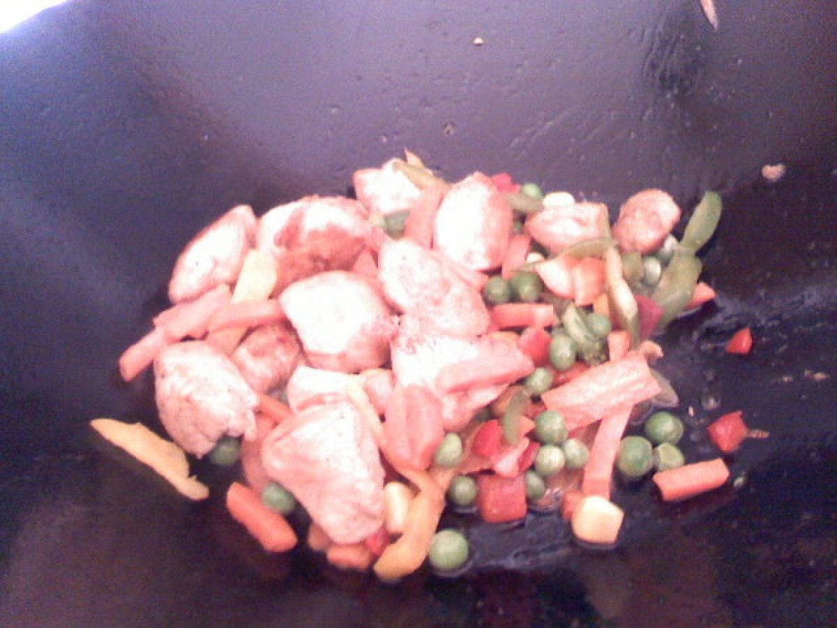Noodles cu pui si legume PrecedentulUrmătorul Felul principalFoarte ușor27 min Trimite unui prieten Printează pagina Adresează o întrebare autorului Postează o poză cu rețeta gătită de tine Ingrediente 2 2 portii noodles (erau impachetati individual) 1 piept de pui mic 3 liguri sos de soia 1 lingura sos Worchester 1 lingura ulei de susan ulei de susan pentru prajit 1/2 morcov 3 felii de ardei gras verde 3 felii ardei gras galben 200g legume congelate (mazare, porumb, morcov, ardei gras)