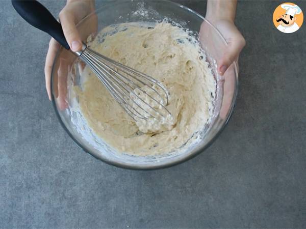 Se amesteca faina cu praful de copt, apoi se adauga supa si se amesteca bine. Se pune la rece timp de aproximativ 30 de minute (timp in care pregatim alte ingrediente).