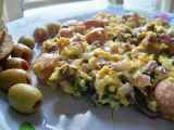 Omleta cu leustean PrecedentulUrmătorul Felul principalFoarte ușor10 min Trimite unui prieten Printează pagina Adresează o întrebare autorului Postează o poză cu rețeta gătită de tine Merge foarte bine cu o salata de legume si paine proaspata. Ingrediente 1 2 oua telemea de vaca, putin sarata o legatura de leustean 1 fir de ceapa verde sare, daca mai este nevoie