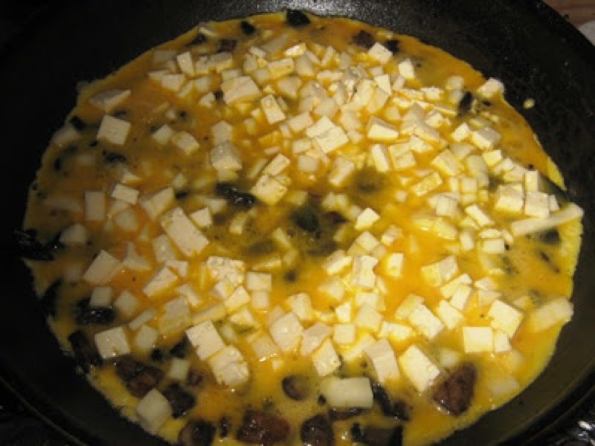 Omleta cu multa branza cu ciuperci si patrunjel PrecedentulUrmătorul Felul principalFoarte ușor45 min Trimite unui prieten Printează pagina Adresează o întrebare autorului Postează o poză cu rețeta gătită de tine Ingrediente 6 4 oua mari 200 g cas de oaie 200 g cascaval o mana de ciuperci cateva lingurite de apa minerala mult patrunjel sare, piper, ulei