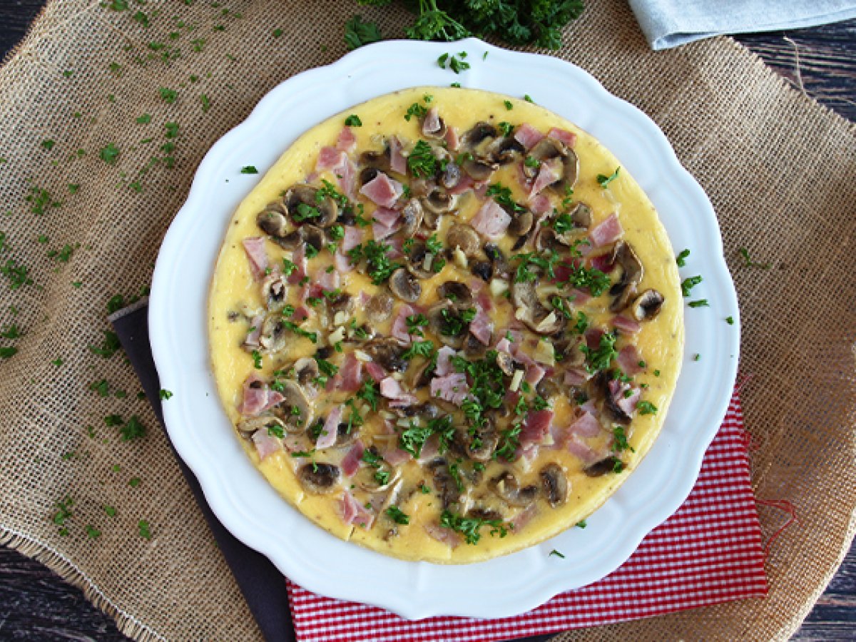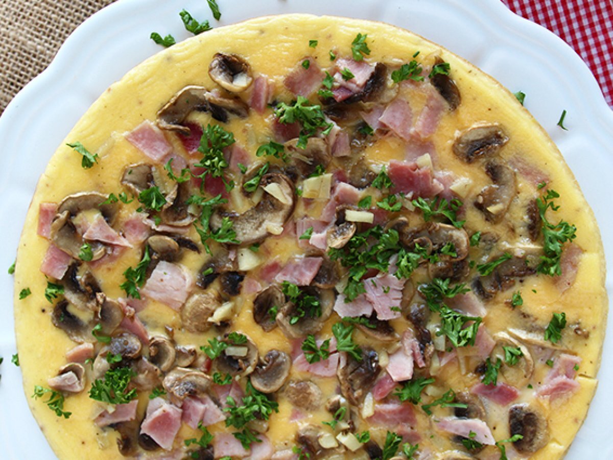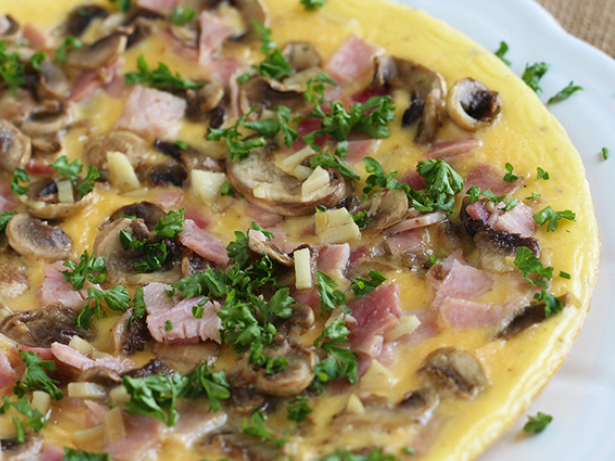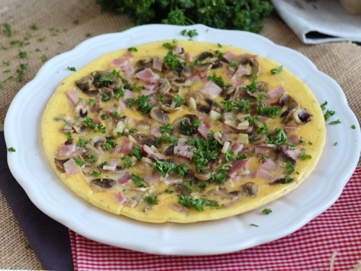 Omleta super simpla cu ciuperci, sunca si patrunjel