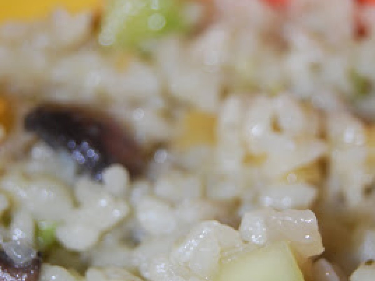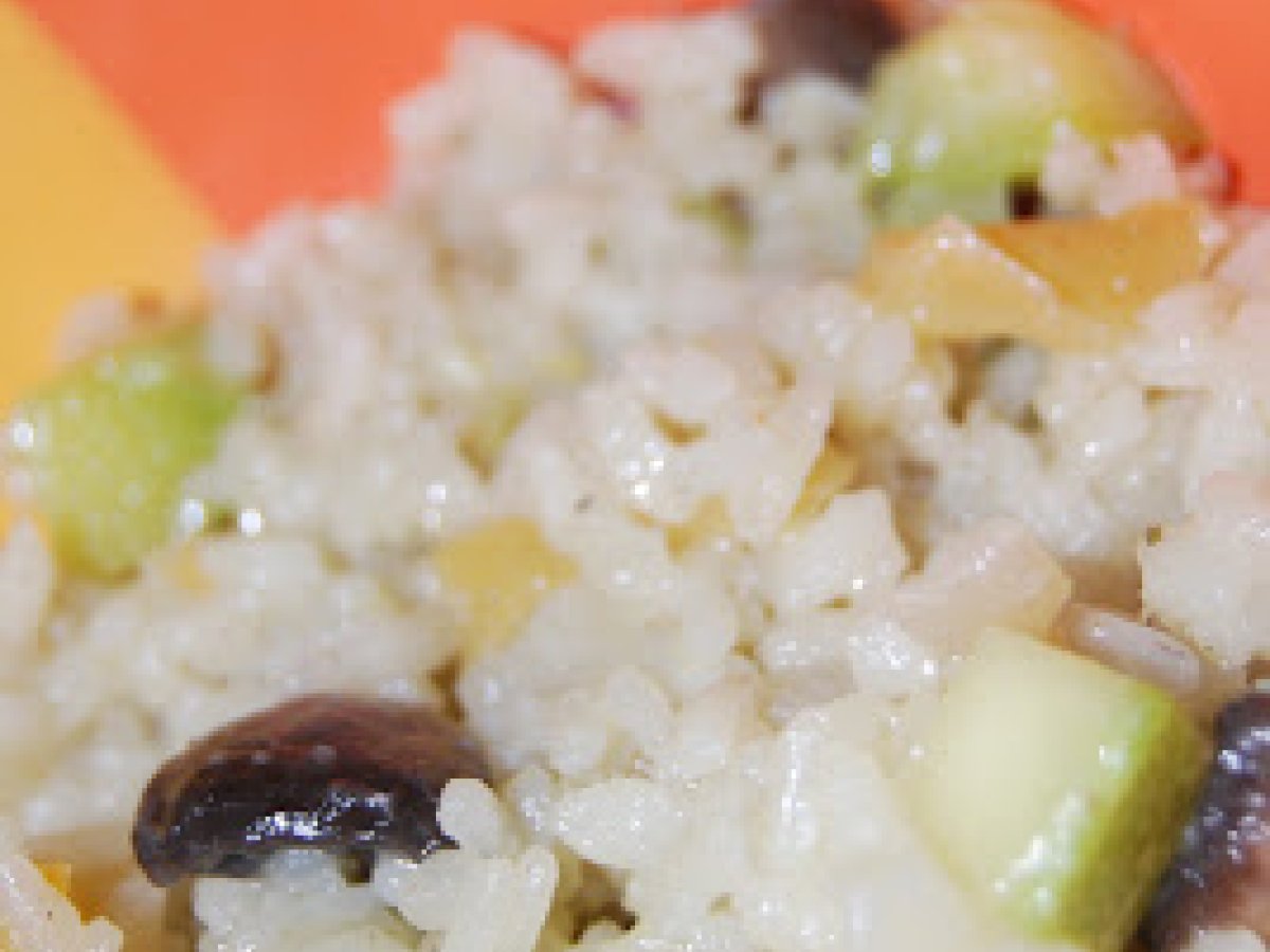 Orez cu legume si ciuperci PrecedentulUrmătorul Felul principalFoarte ușor45 min500 Kcal Trimite unui prieten Printează pagina Adresează o întrebare autorului Postează o poză cu rețeta gătită de tine Ingrediente 4 500 g orez 1/2 kg ciuperci champignon 1 dovlecel mic 1 ceapa 1 ardei gras rosu, verde, galben sau - din toate culorile cate un sfert sare si piper Cost estimat: 5.03Euros€ (1.26€/porție)