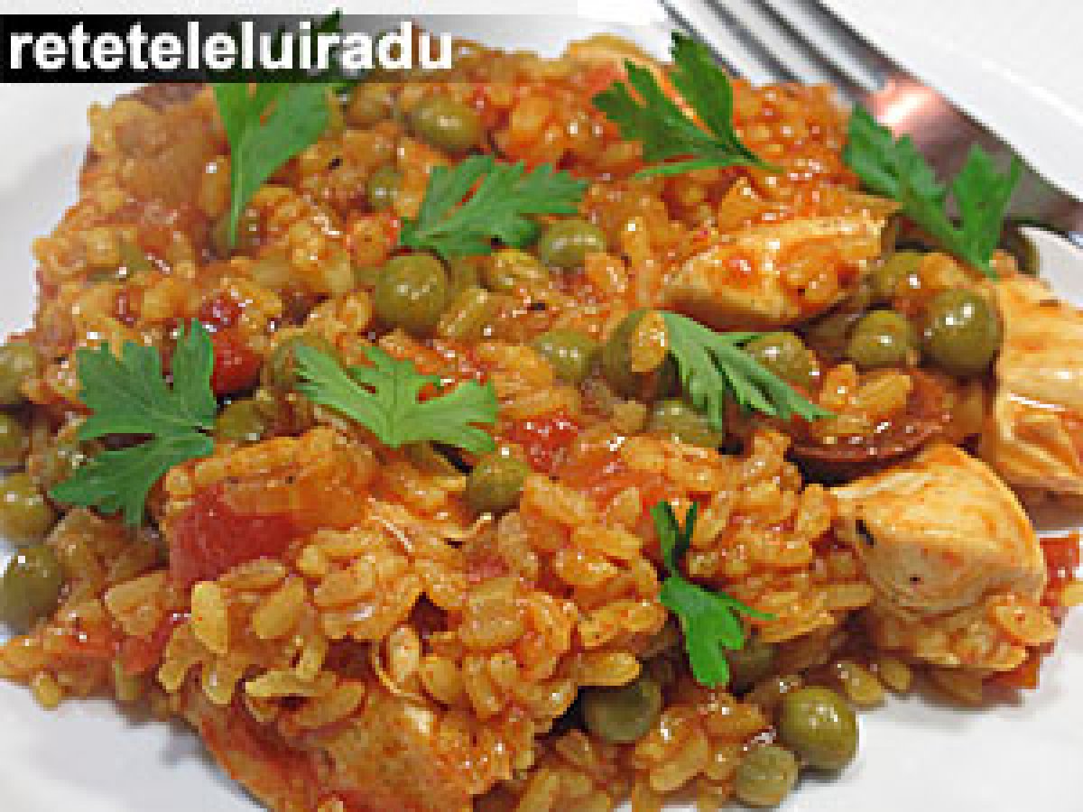 Este o reteta ce foloseste ingredientele asociate de bucataria spaniola, in mod traditional, cu orezul: rosii, usturoi si sofran.