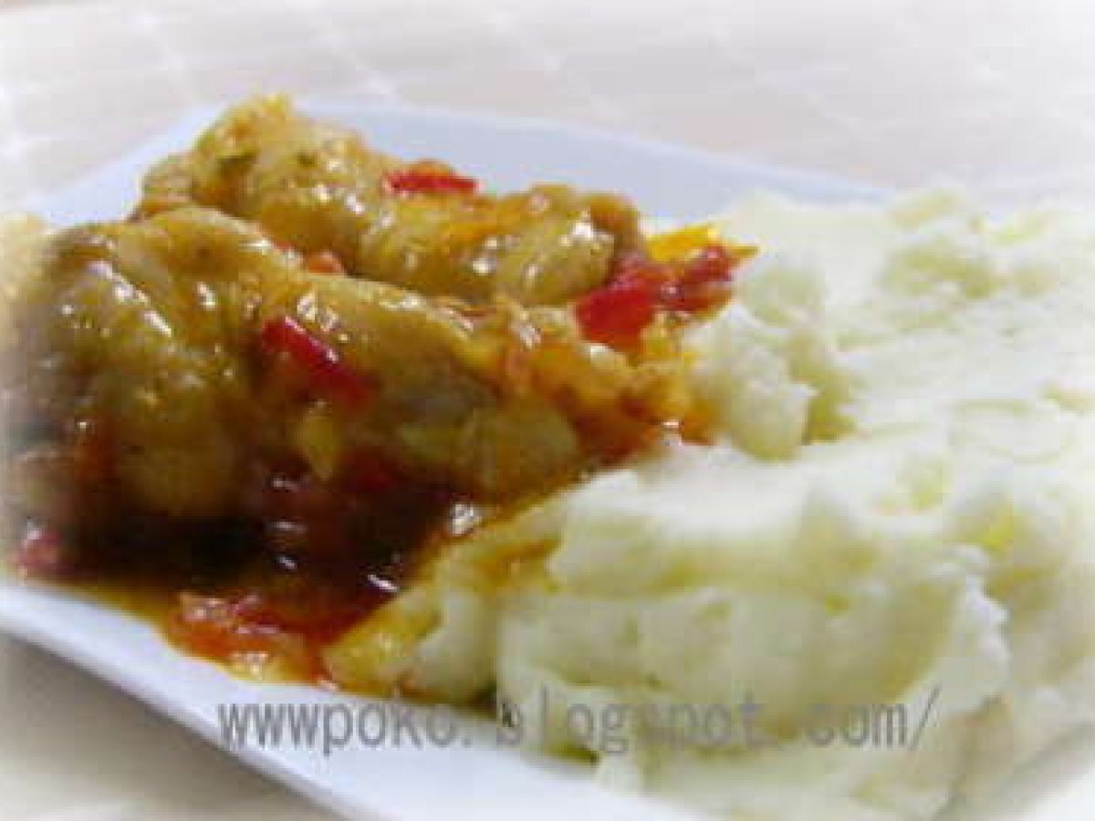Ostropel de pui cu pireu de cartofi PrecedentulUrmătorul Felul principalUșor55 min Trimite unui prieten Printează pagina Adresează o întrebare autorului Postează o poză cu rețeta gătită de tine Ingrediente 8 Pentru ostropel: 8-10 ciocanele pui,6 linguri ulei(sau untura),2 cepe,usturoi verde sau 7-8 catei de usturoi,2-3 linguri bulion,piper boabe(zdrobit putin), 1 lingurita faina,1 foaie de dafin, 1 pahar vin sec, sare. Pentru pireu de cartofi: 600 g cartofi,50 g unt, putin lapte si sare.