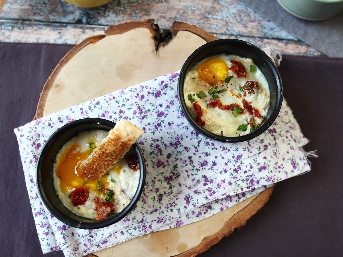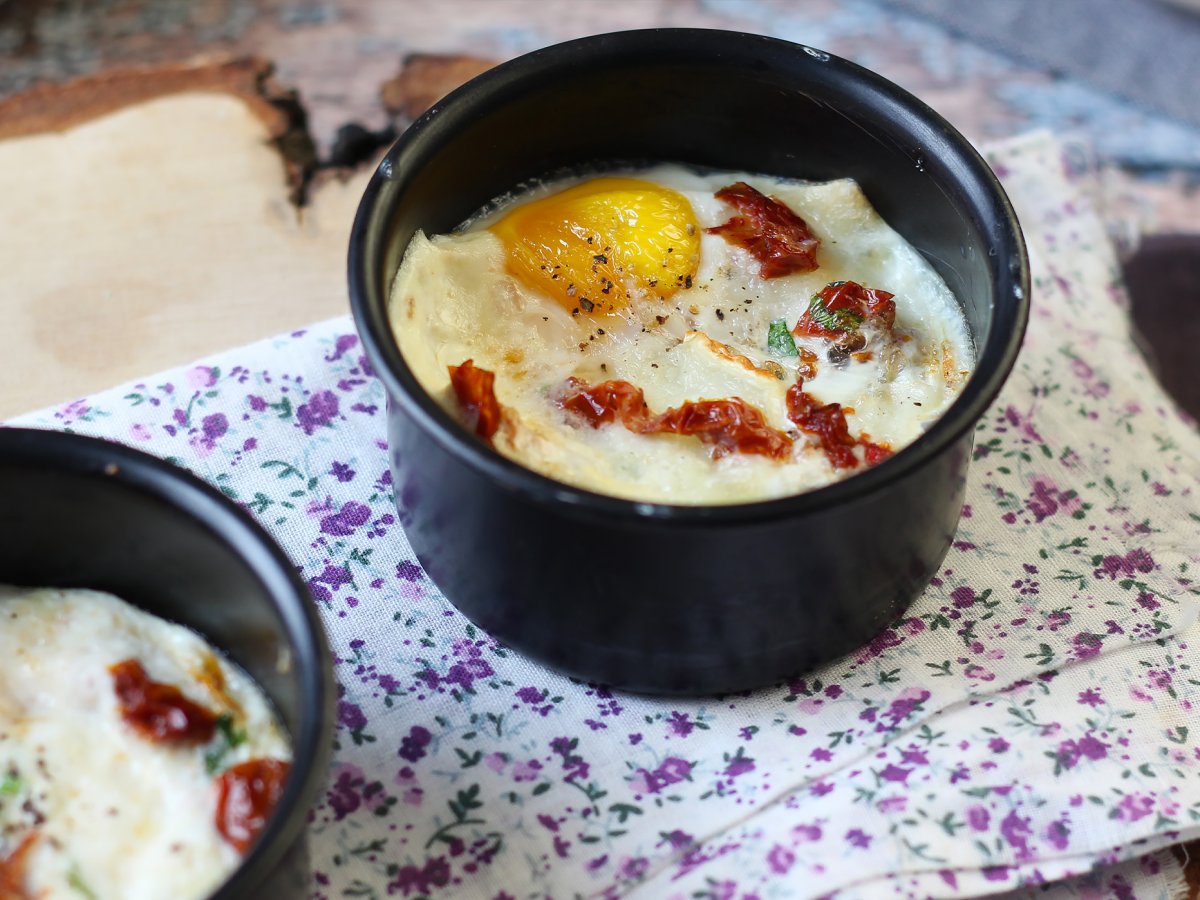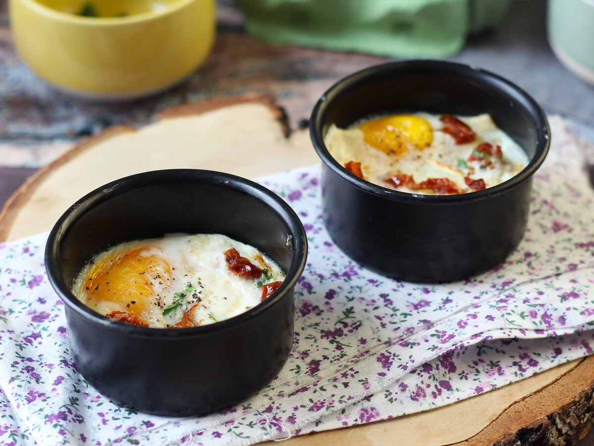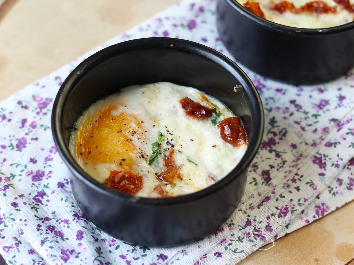 Ouă en cocotte cu brânză de capră și roșii uscate la air fryer!