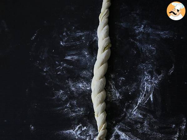 Insafurati suvitele rasucite, dand forma unui melc, apoi transferati pe o tava acoperită cu hartie de copt.