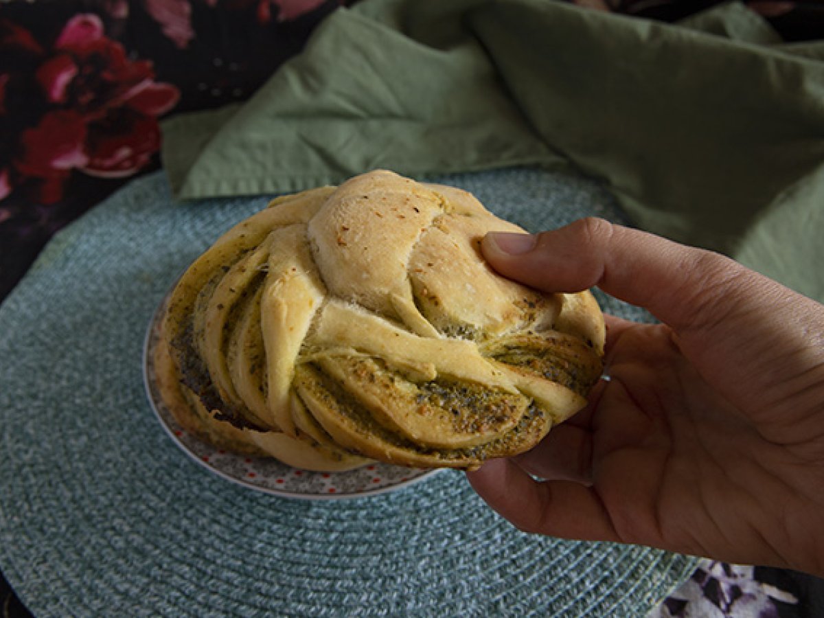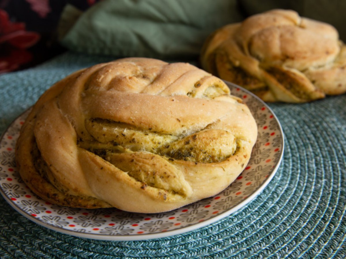 O reteta de casa, accesibila tuturor si potrivita pentru ridicarea moralului: D Urmati pasii pentru a face aceste painici impletite si aromate cu pesto verde! Totul este explicat in retata scrisa, fotografii si in videoclip.